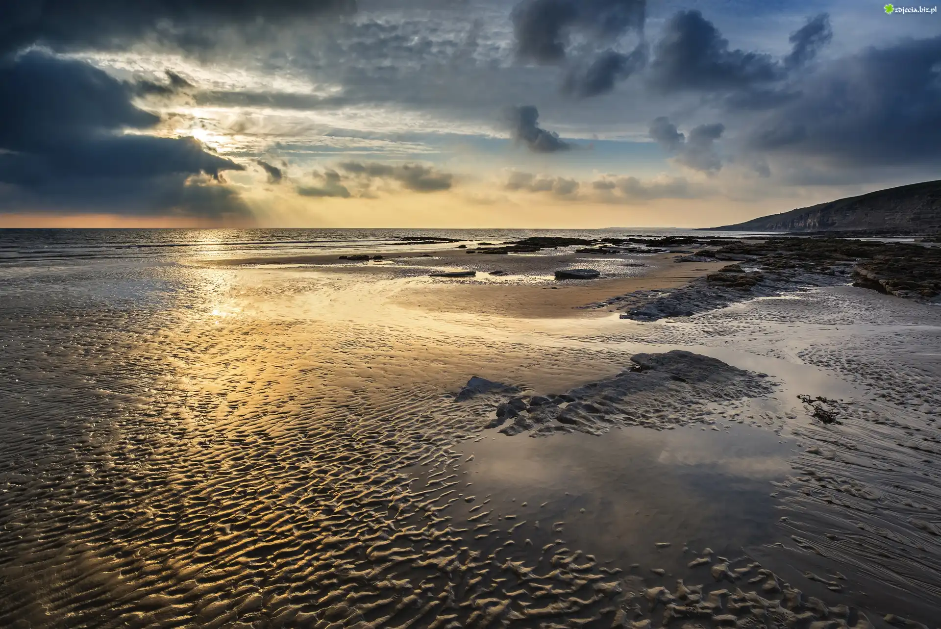 Zdjęcie, Plaża Dunraven Bay, Walia, Morze, Wschód słońca
