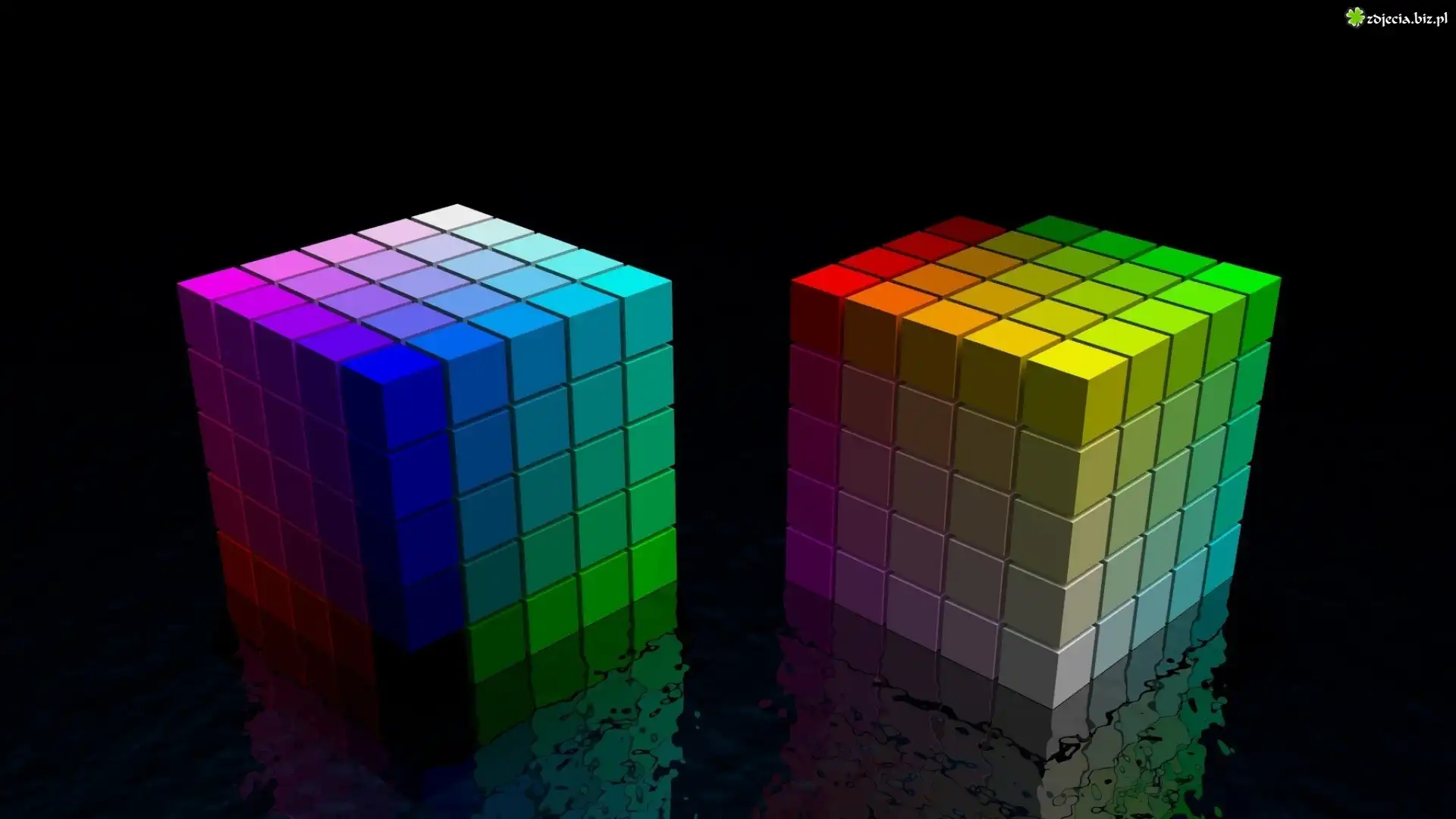 Zdjęcie Dwa, Kolorowe, Sześciany, 3D, Odbicie