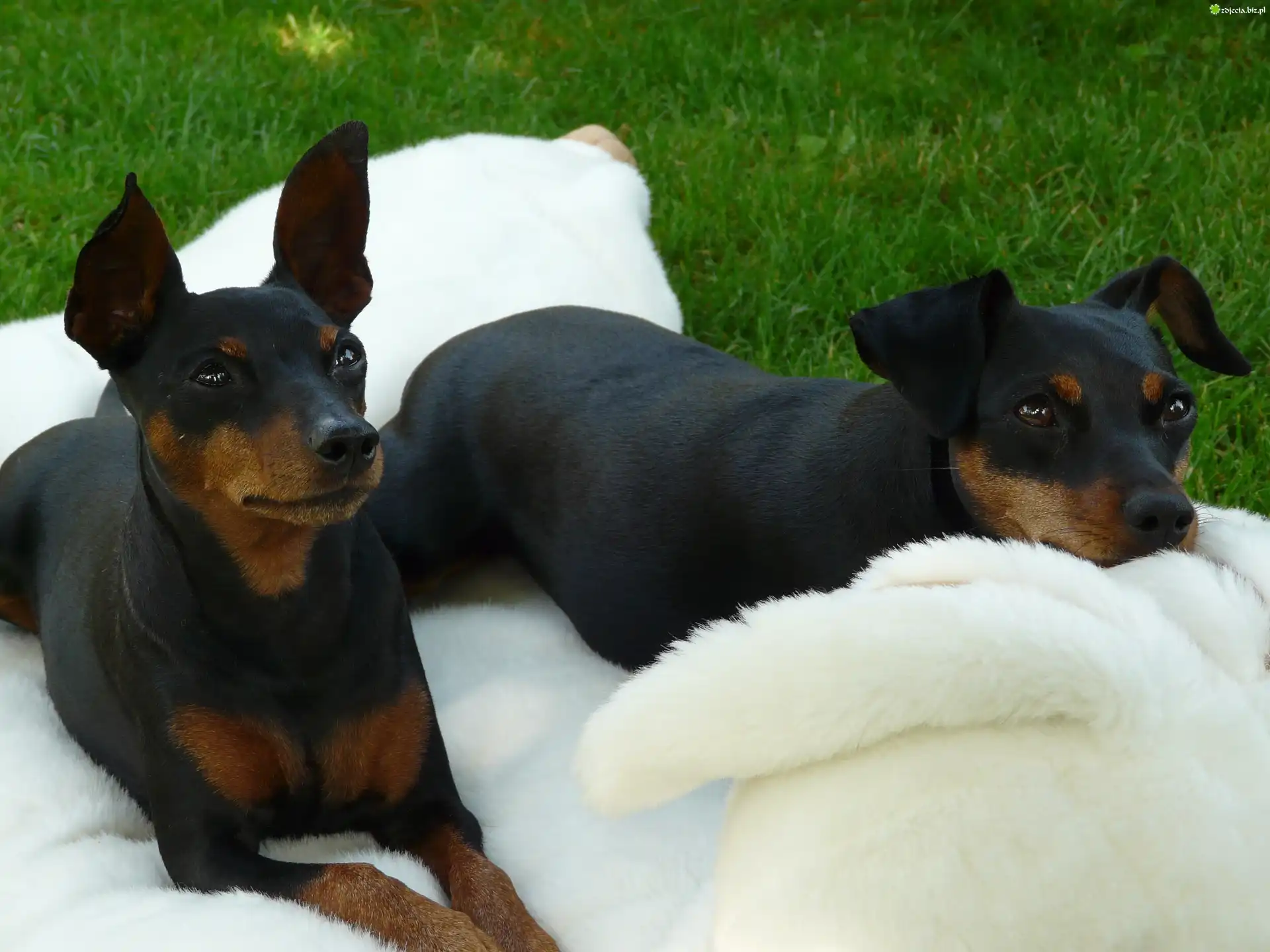 Zdjęcie, dwa, Pinczery miniaturowe, biały, koc