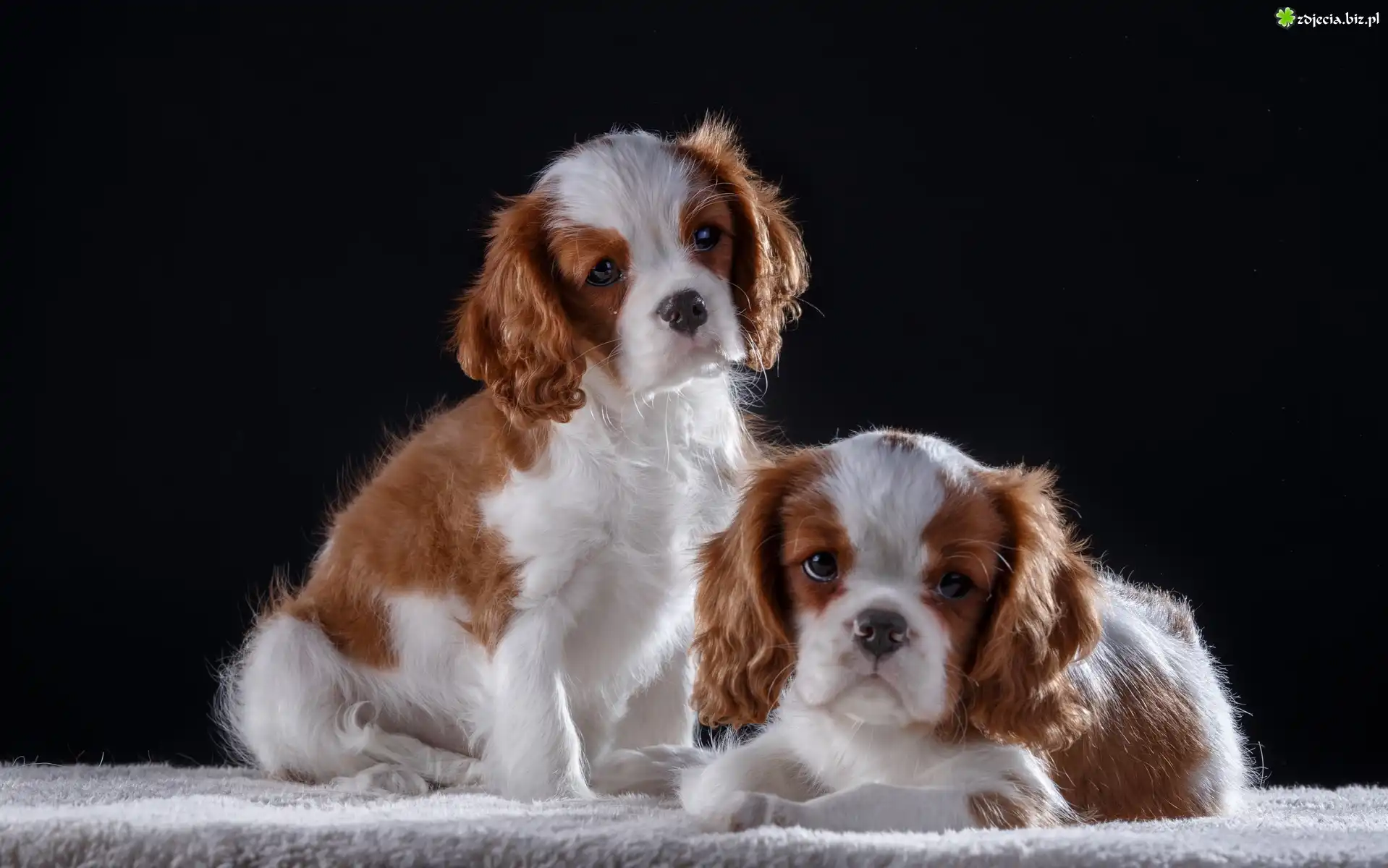 Zdjęcie Dwa, Szczeniaki, Cavalier King Charles spaniele