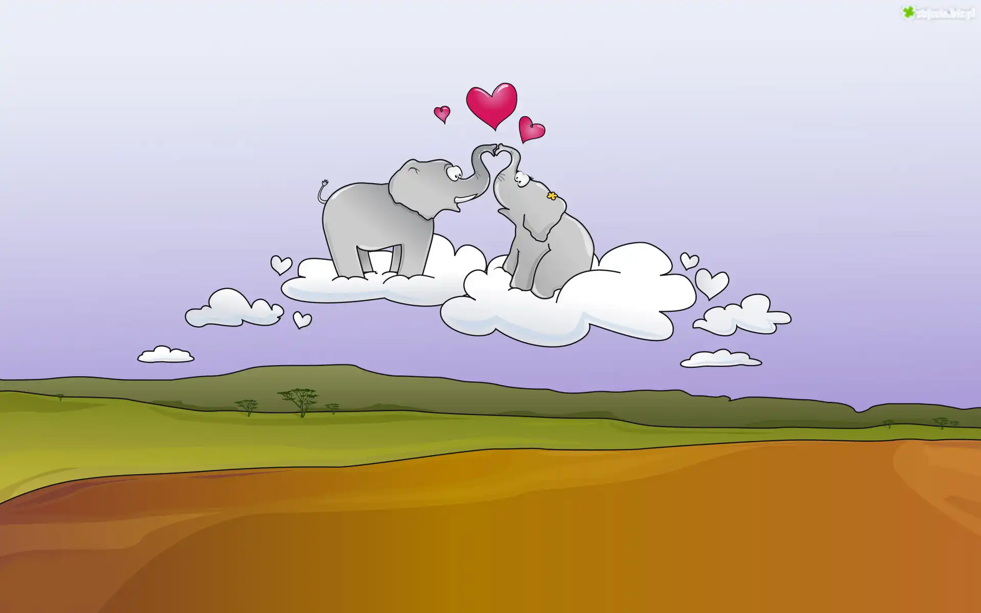 Zdjęcie Dwa, Zakochane, Słonie, Chmurki, Serduszka