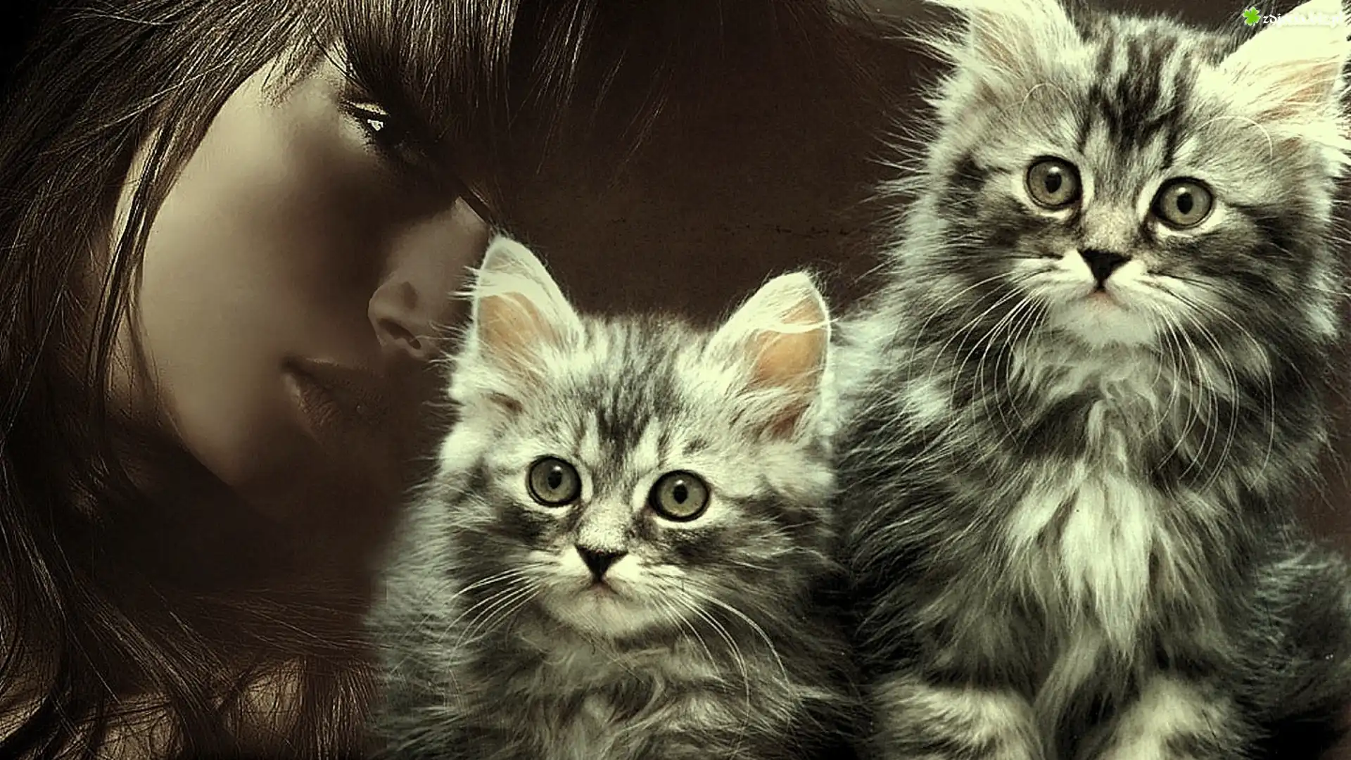 Zdjęcie Dziewczyna, Dwa, Kotki
