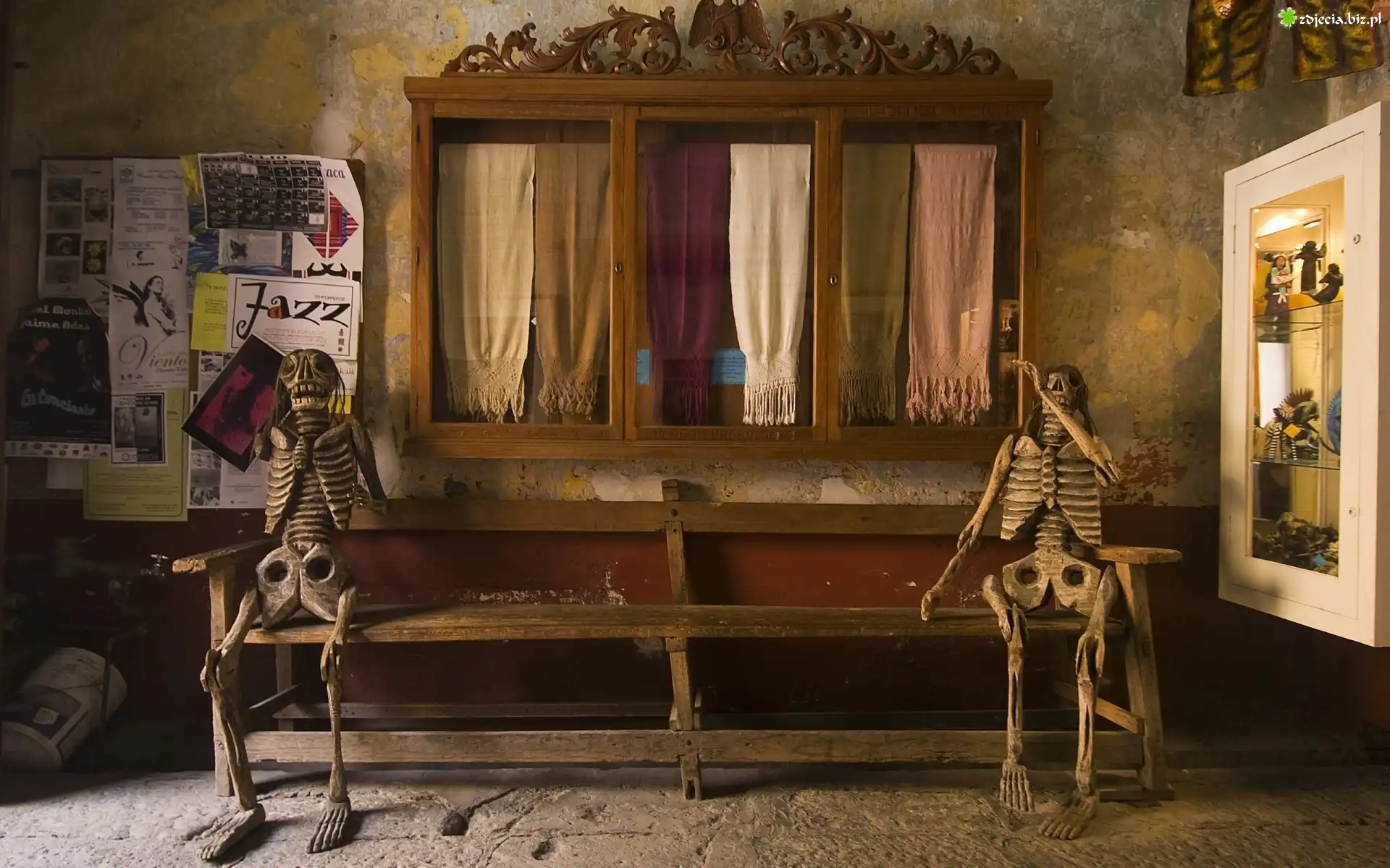 Zdjęcie Ławka, Gabloty, Dwa, Kościotrupy