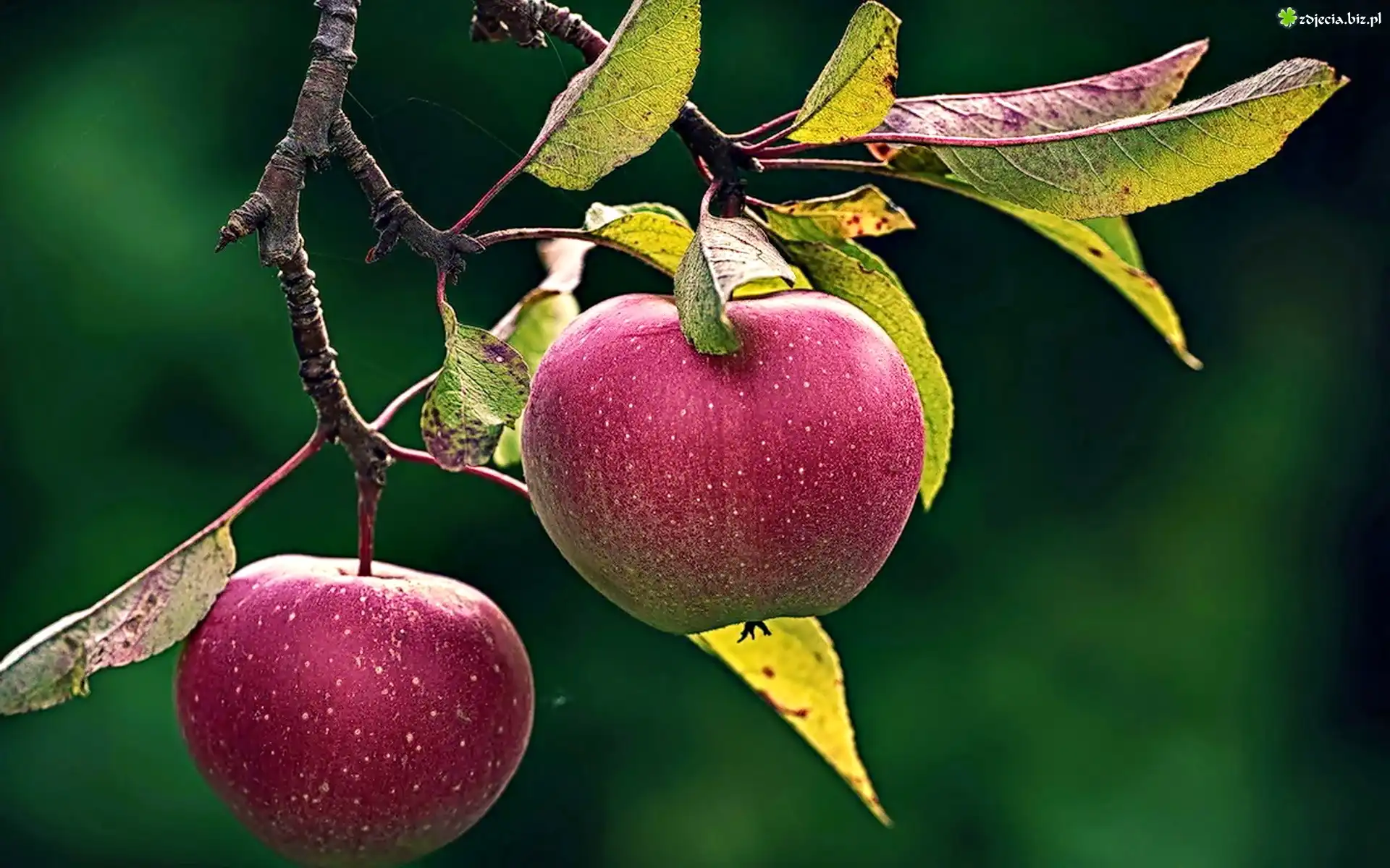 Zdjęcie Dwa, Jabłka, Gałązka, Listki