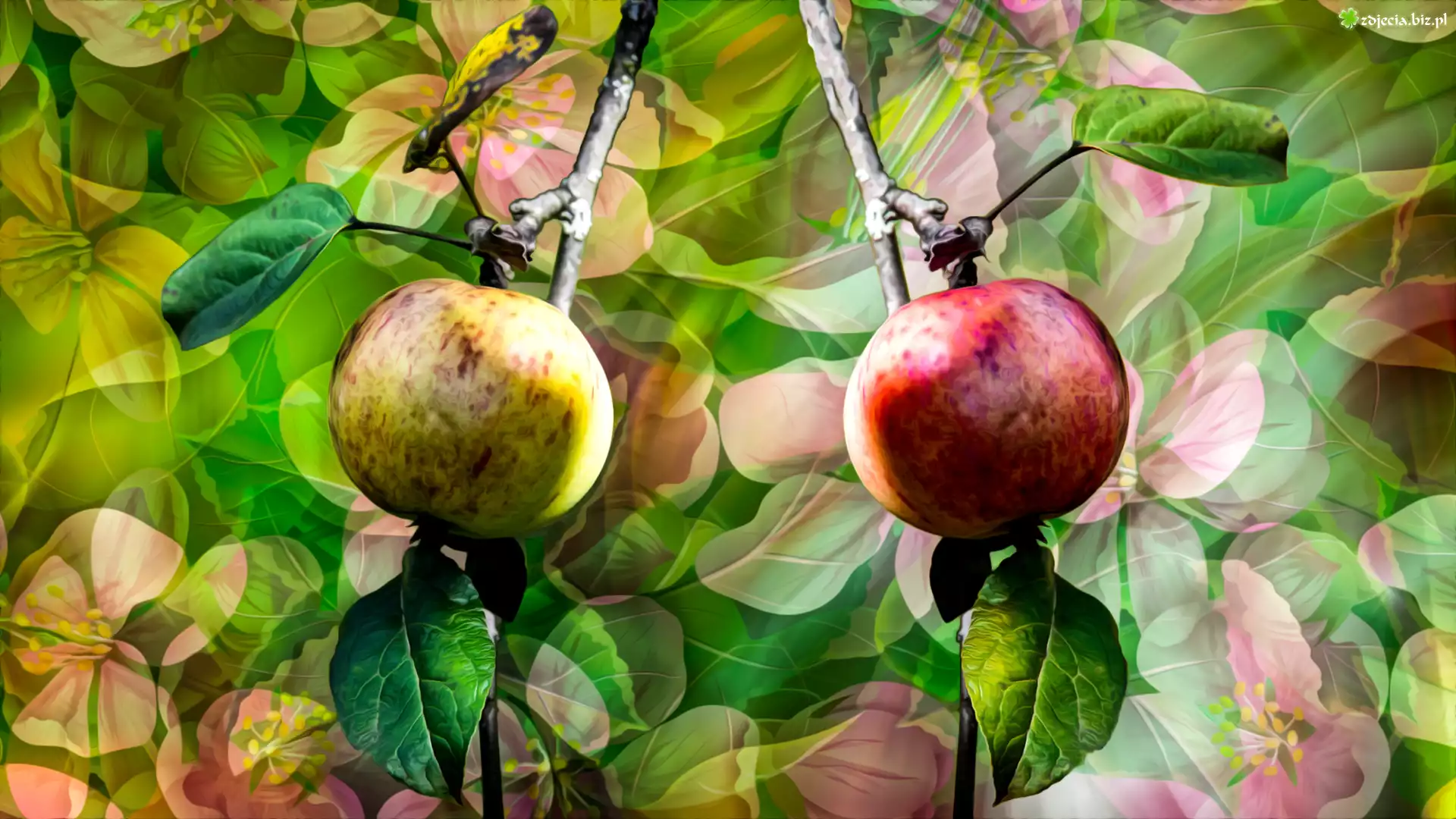 Zdjęcie Dwa, Jabłka, Gałązki, Grafika