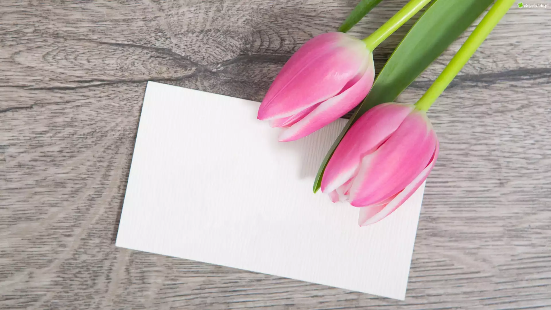 Zdjęcie Dwa, Różowe, Tulipany, Kartka, Deski