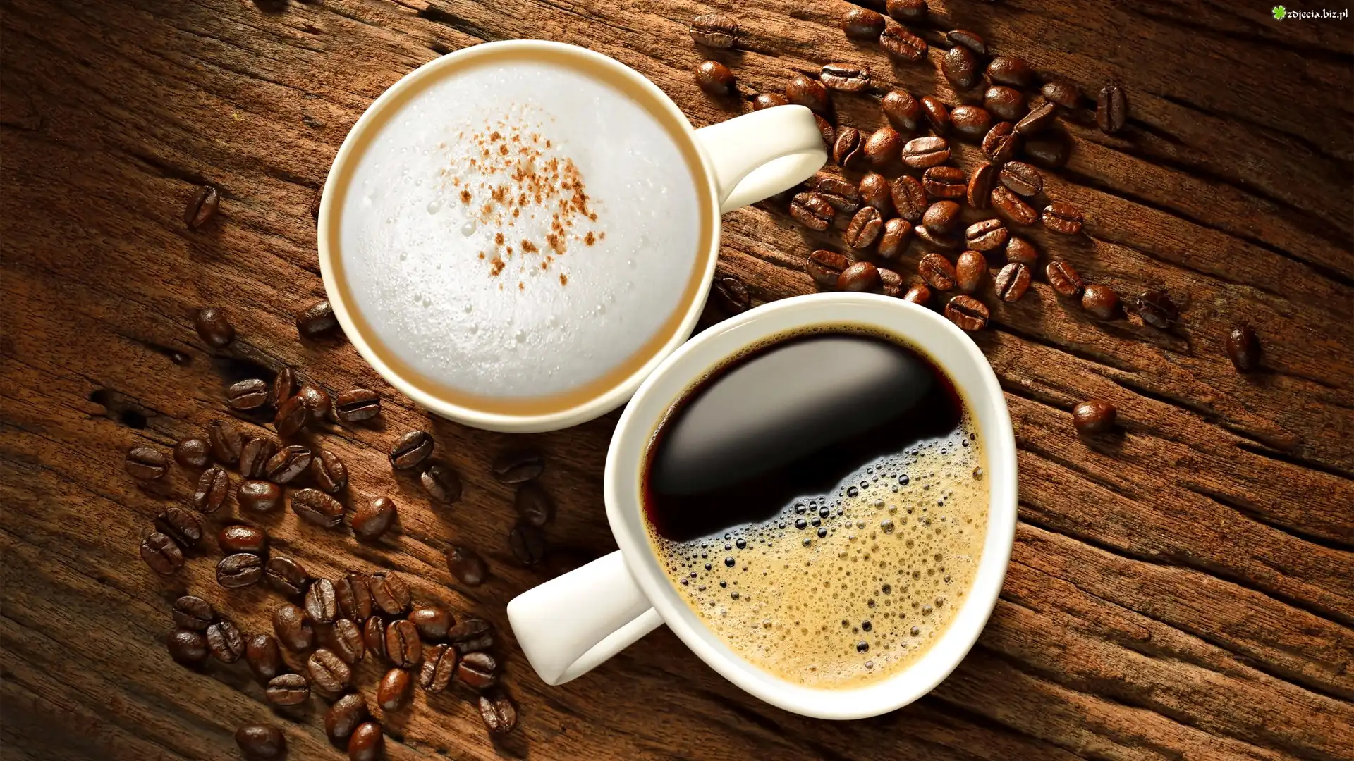 Zdjęcie Dwa, Kubki, Kawa, Ziarna