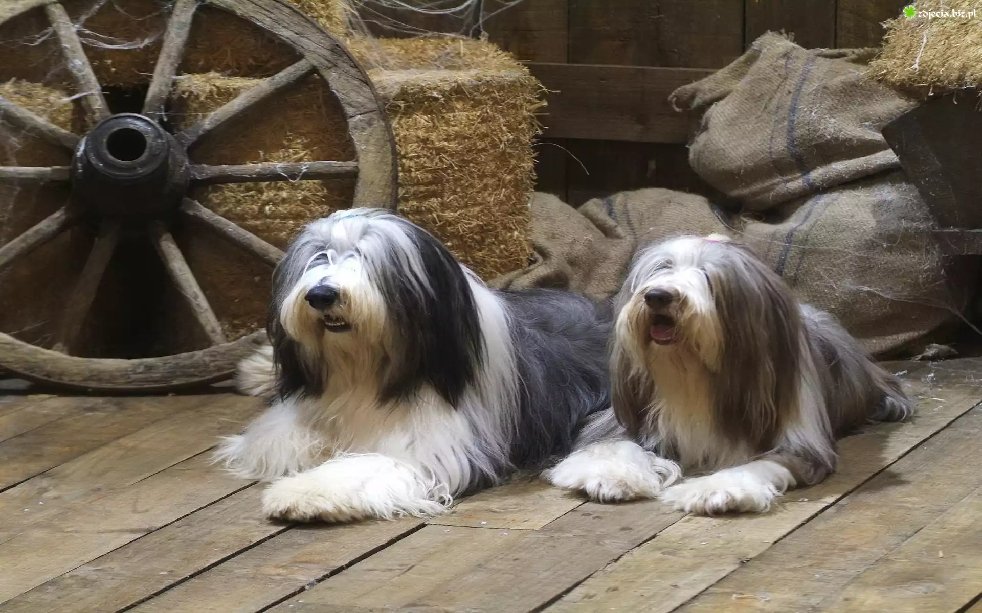 Zdjęcie Dwa, Psy, Koło, Słoma