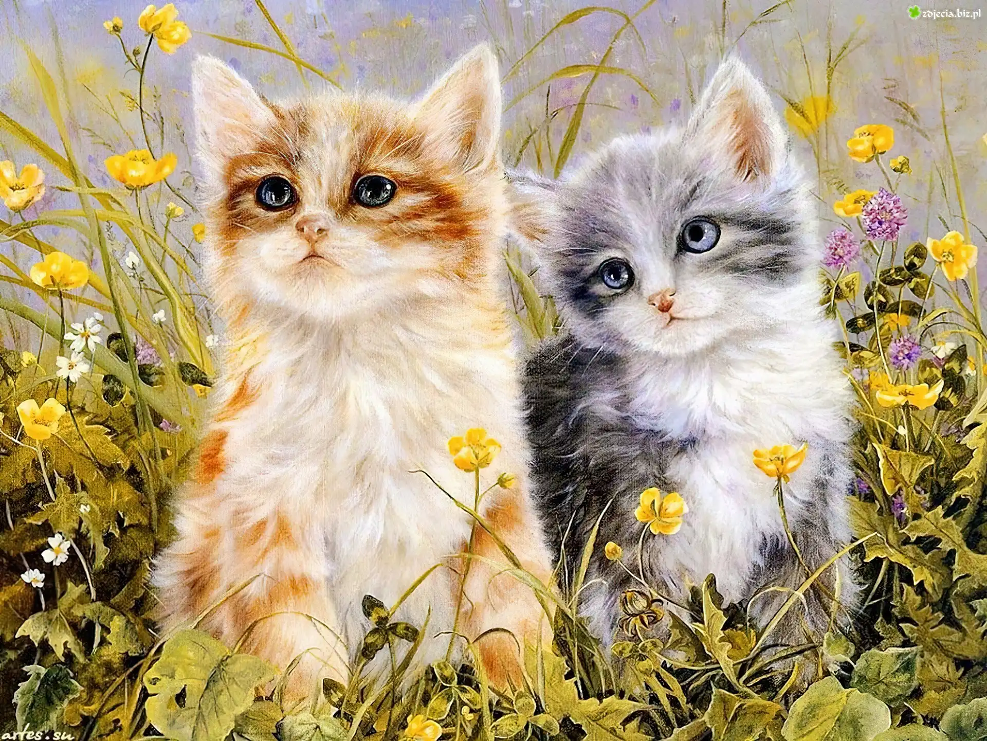 Zdjęcie Kotki, Dwa, Kwiaty