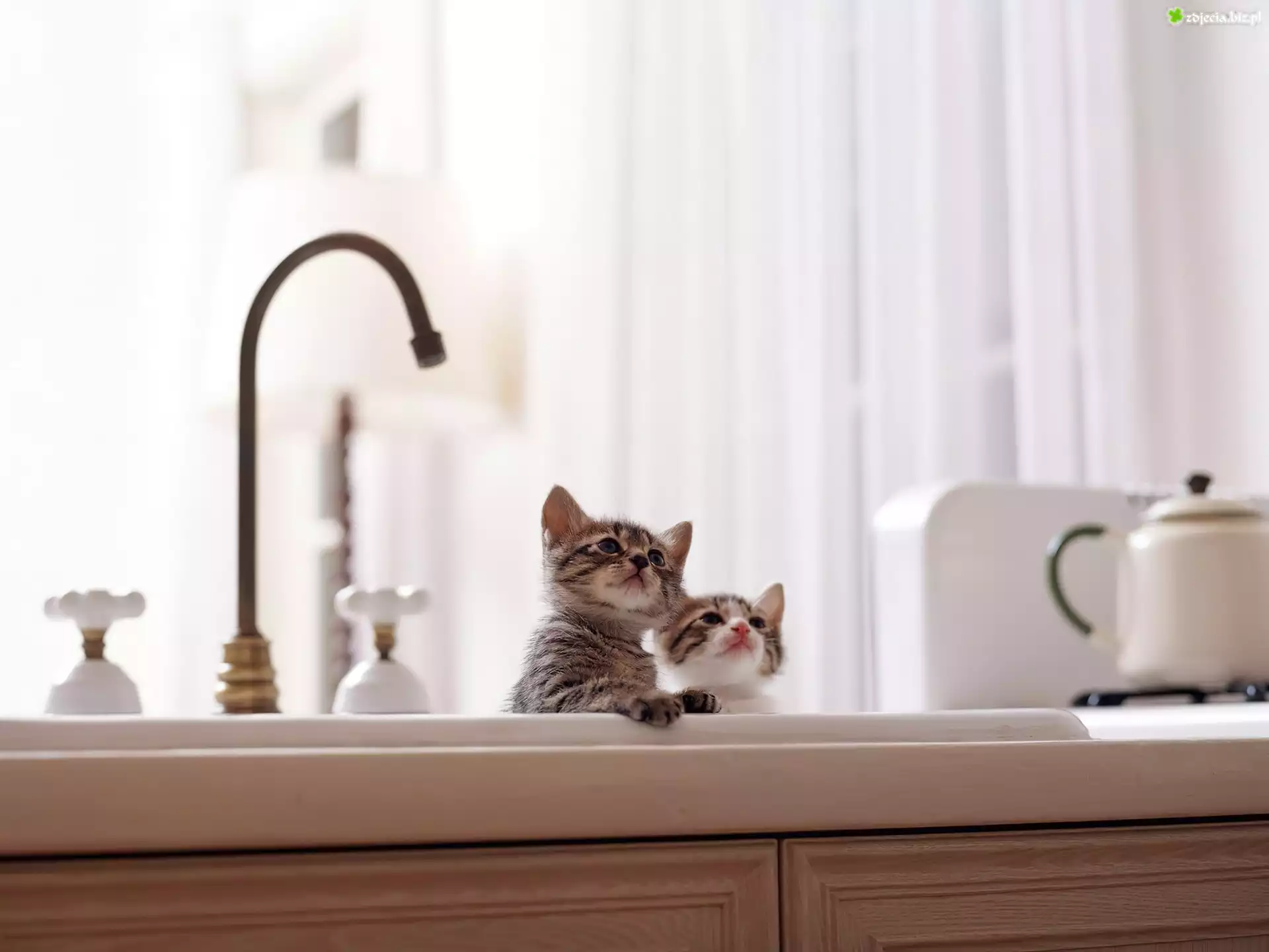 Zdjęcie Dwa, Małe, Kotki, Zlew