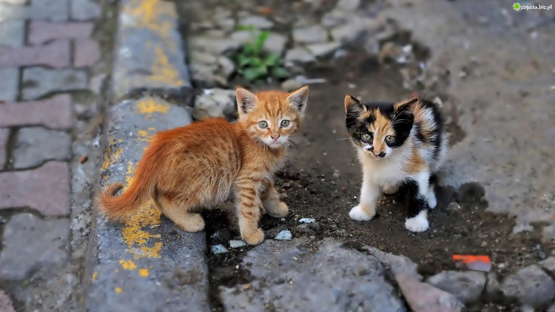 Zdjęcie Dwa, Młode, Kotki, Ulica