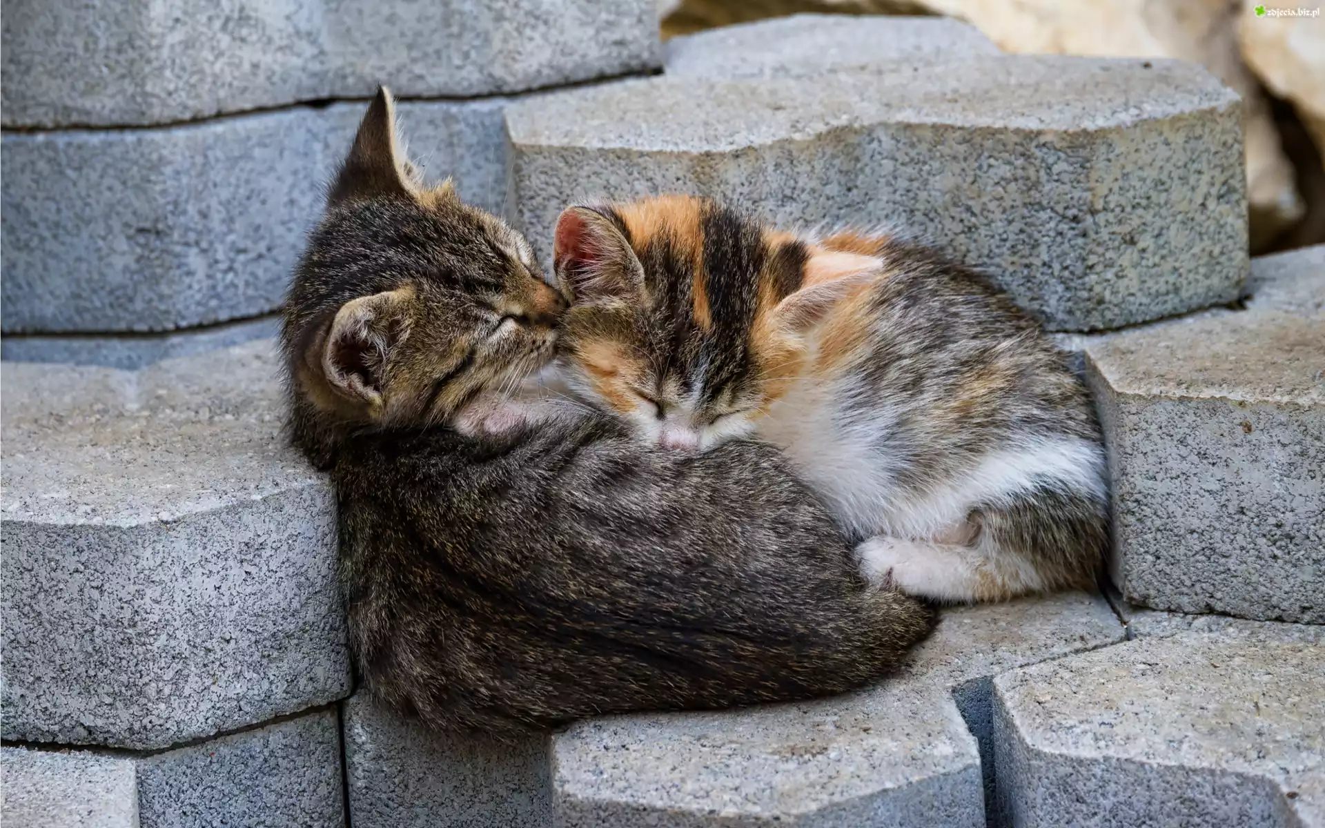 Zdjęcie Dwa, Śpiące, Słodkie, Kotki, Kamienie