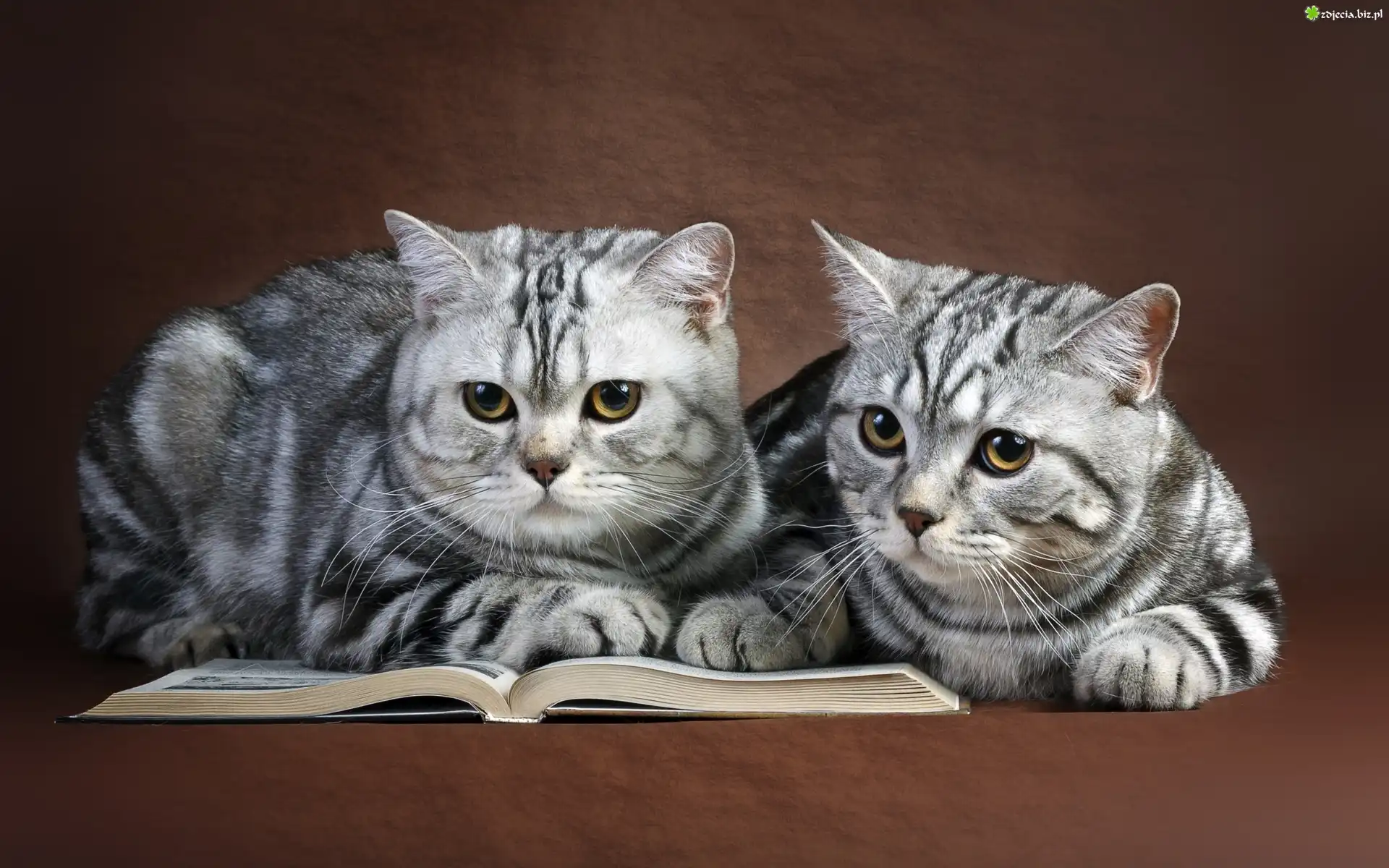 Zdjęcie Dwa, Szare, Kotki, Książka, Brytyjski pręgowany