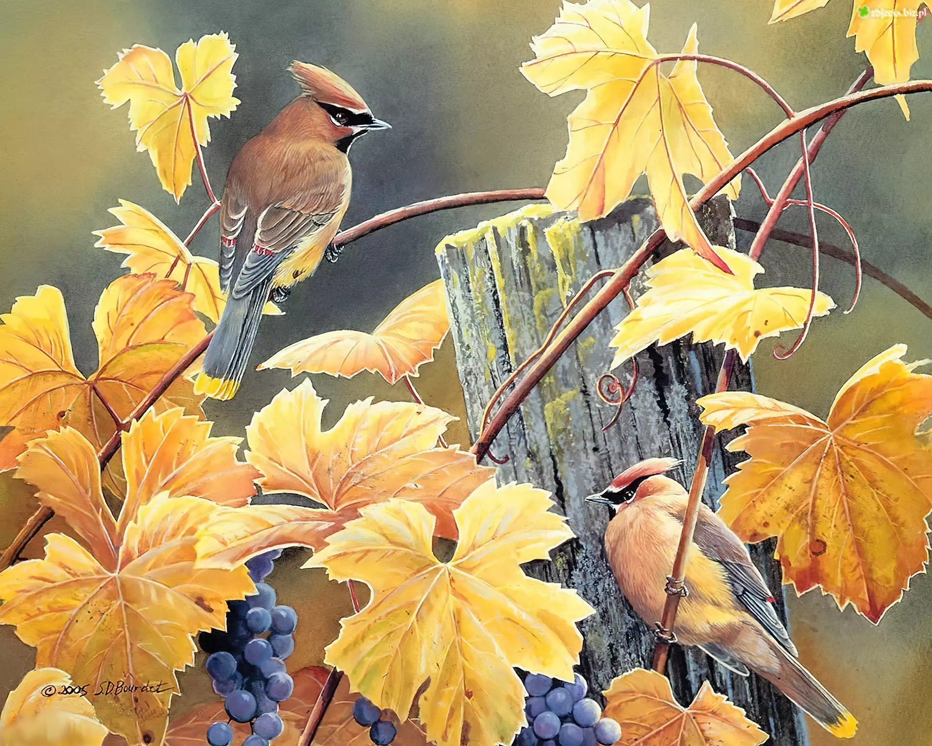 Zdjęcie, Dwie, Jemiołuszki, Płot, Liście, Jesień