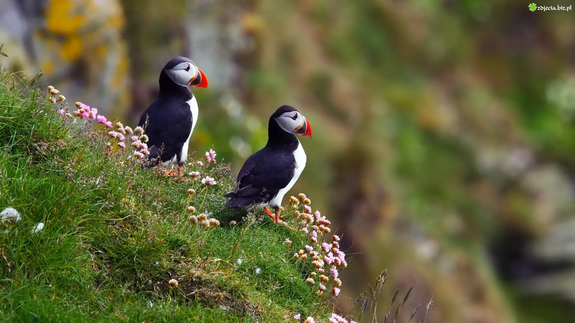 Zdjęcie Dwa, Ptaki, Maskonur, Rośliny