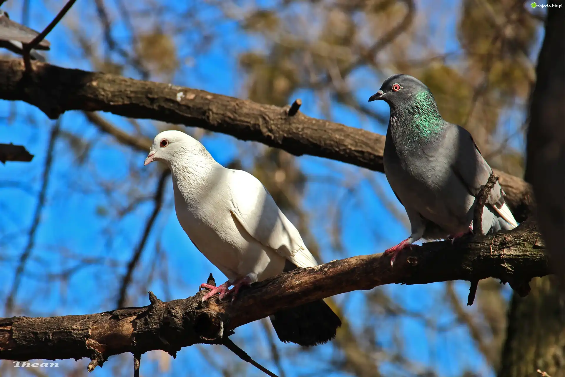 Zdjęcie Dwa, Gołębie, Na, Gałęzi