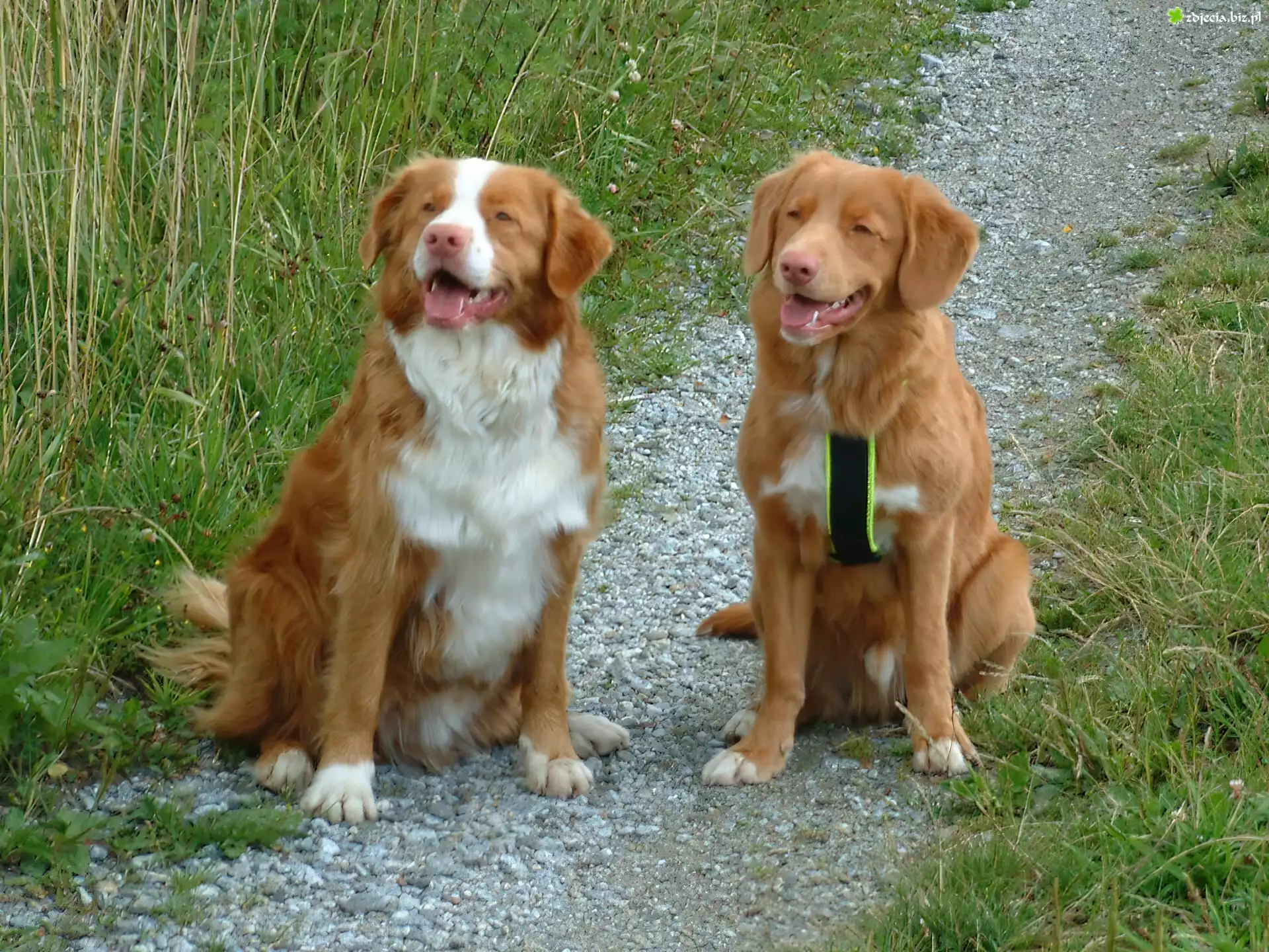 Zdjęcie Dwa, siedzące, Retrievery z Nowej Szkocji