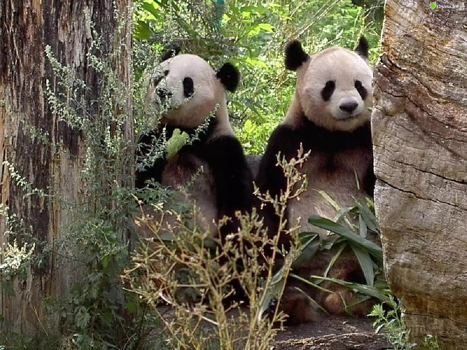 Zdjęcie Dwa, Misie, Panda, Drzewa