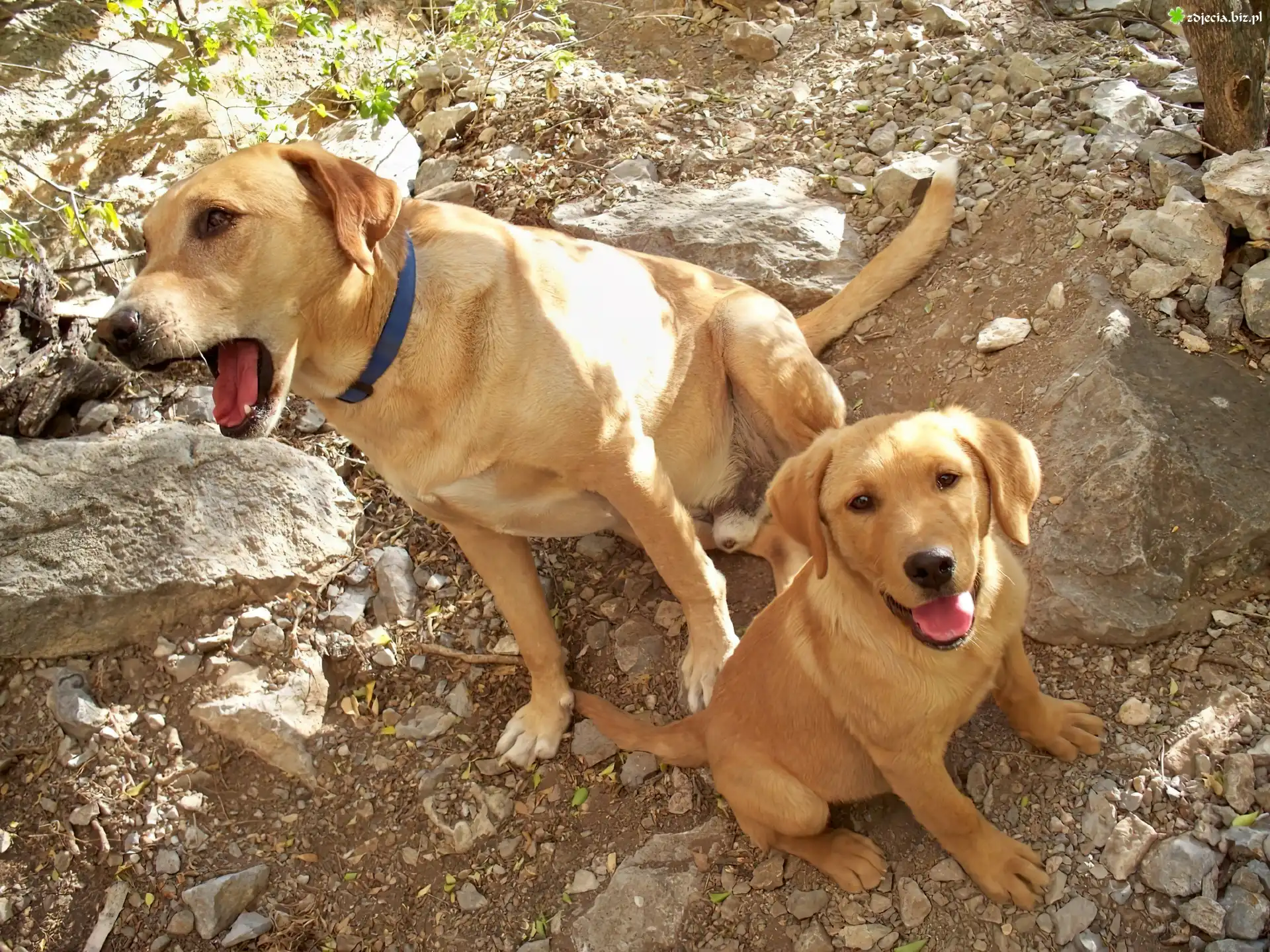 Zdjęcie Dwa, Rude, Pieski, Kamienie, Labradory