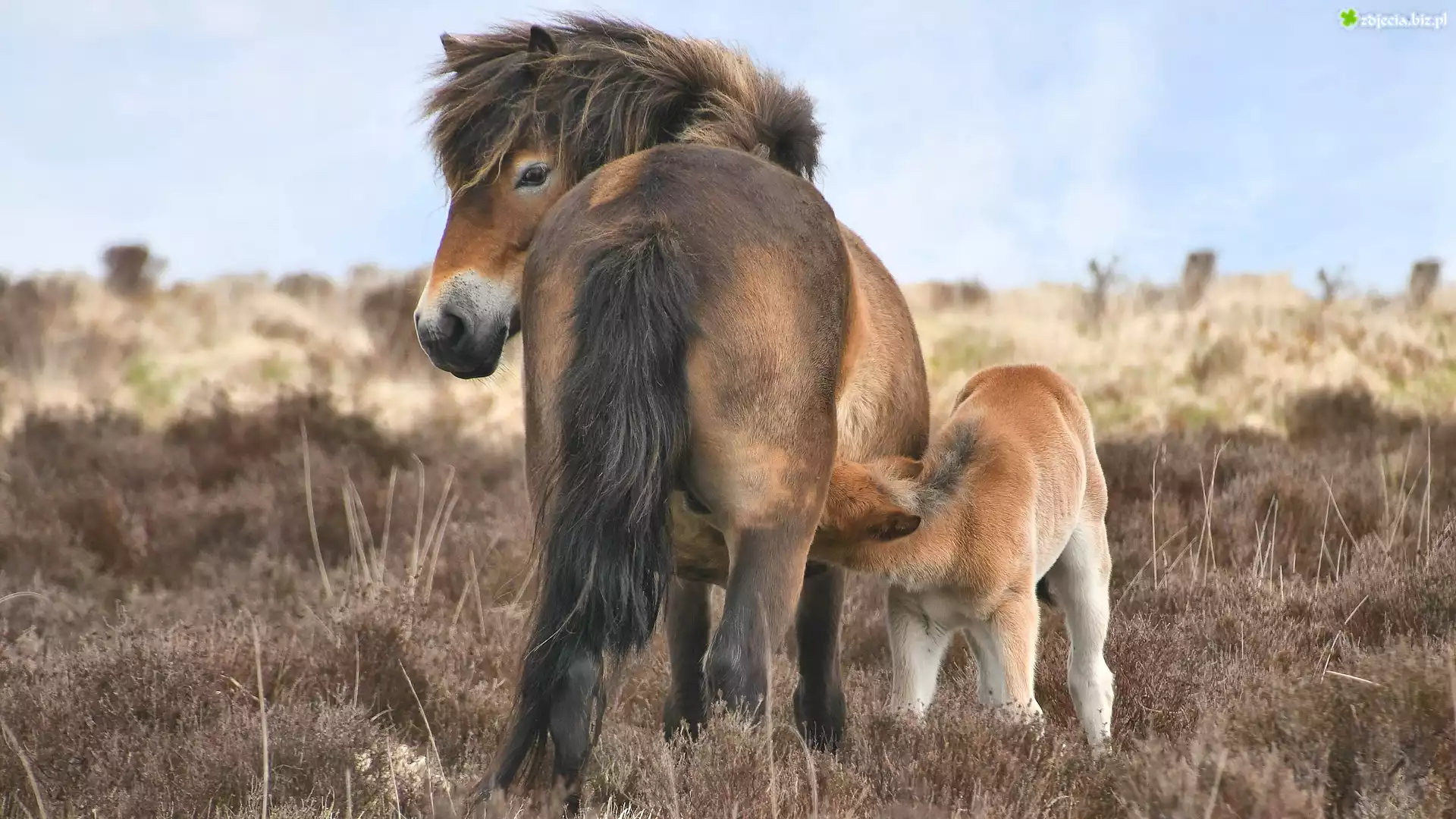 Zdjęcie Dwa, Konie, Kuce Exmoor, Źrebak, Kobyła