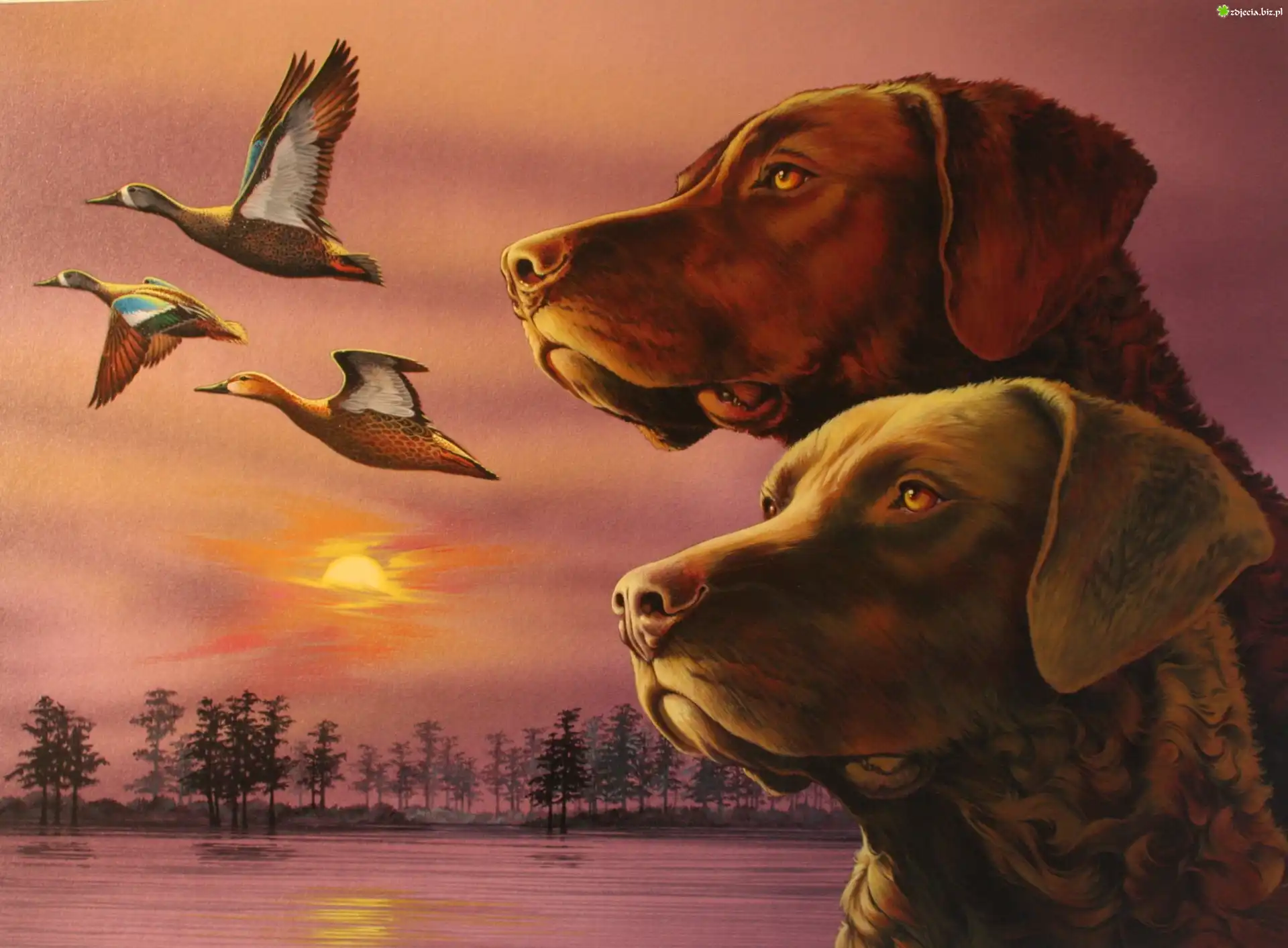 Zdjęcie Dwa, Chesapeake Bay retrievery, kaczki