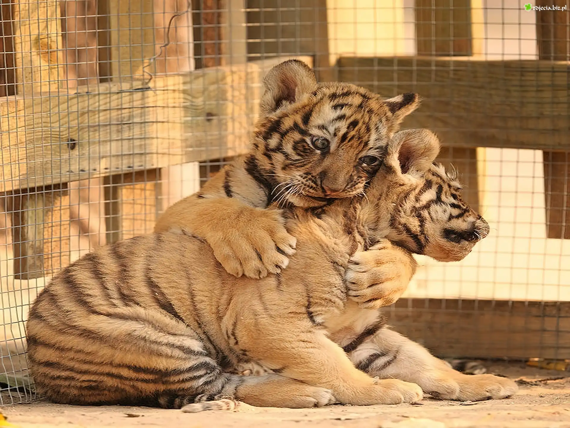 Zdjęcie Dwa, Małe, Przytulone, Tygryski, Klatka