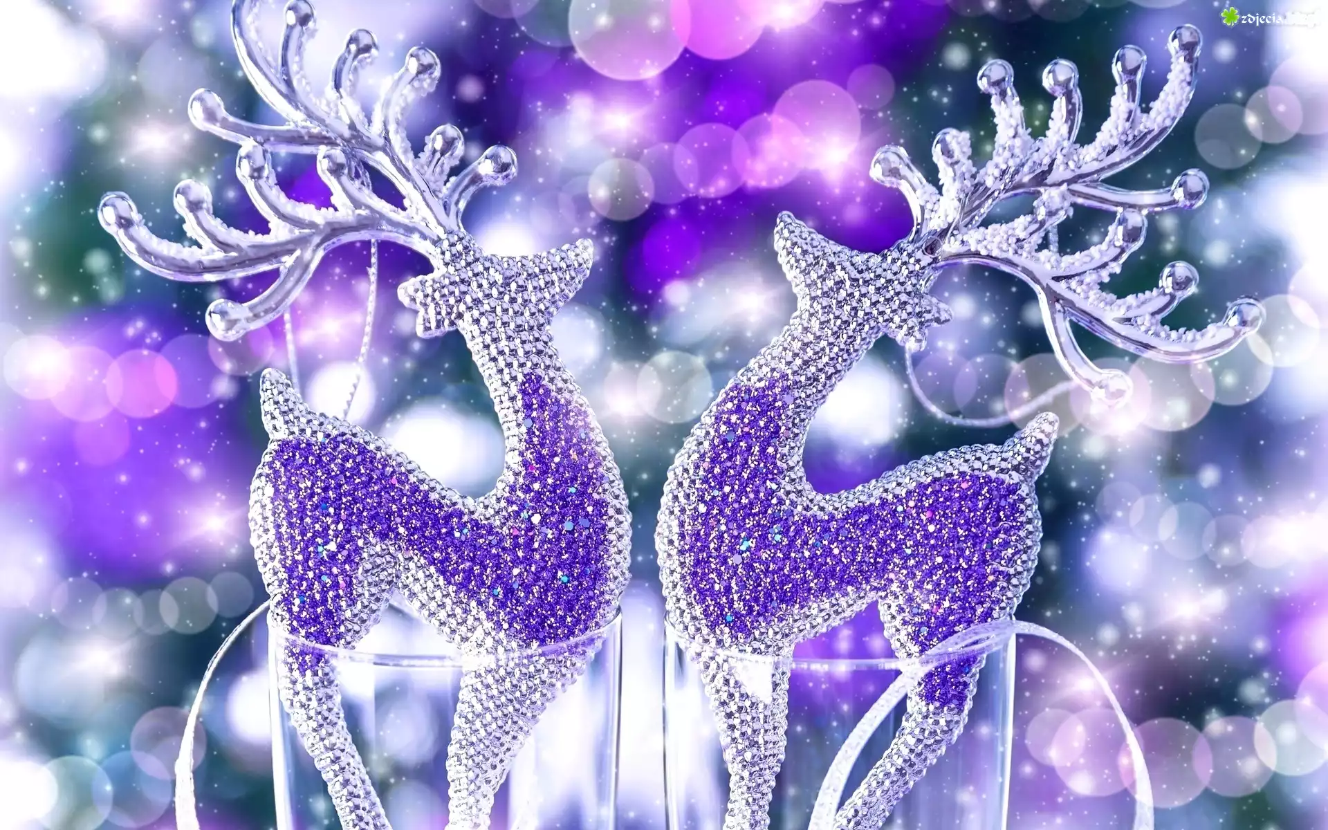 Zdjęcie, Dwa, Renifery, Wazony ,Wstążki