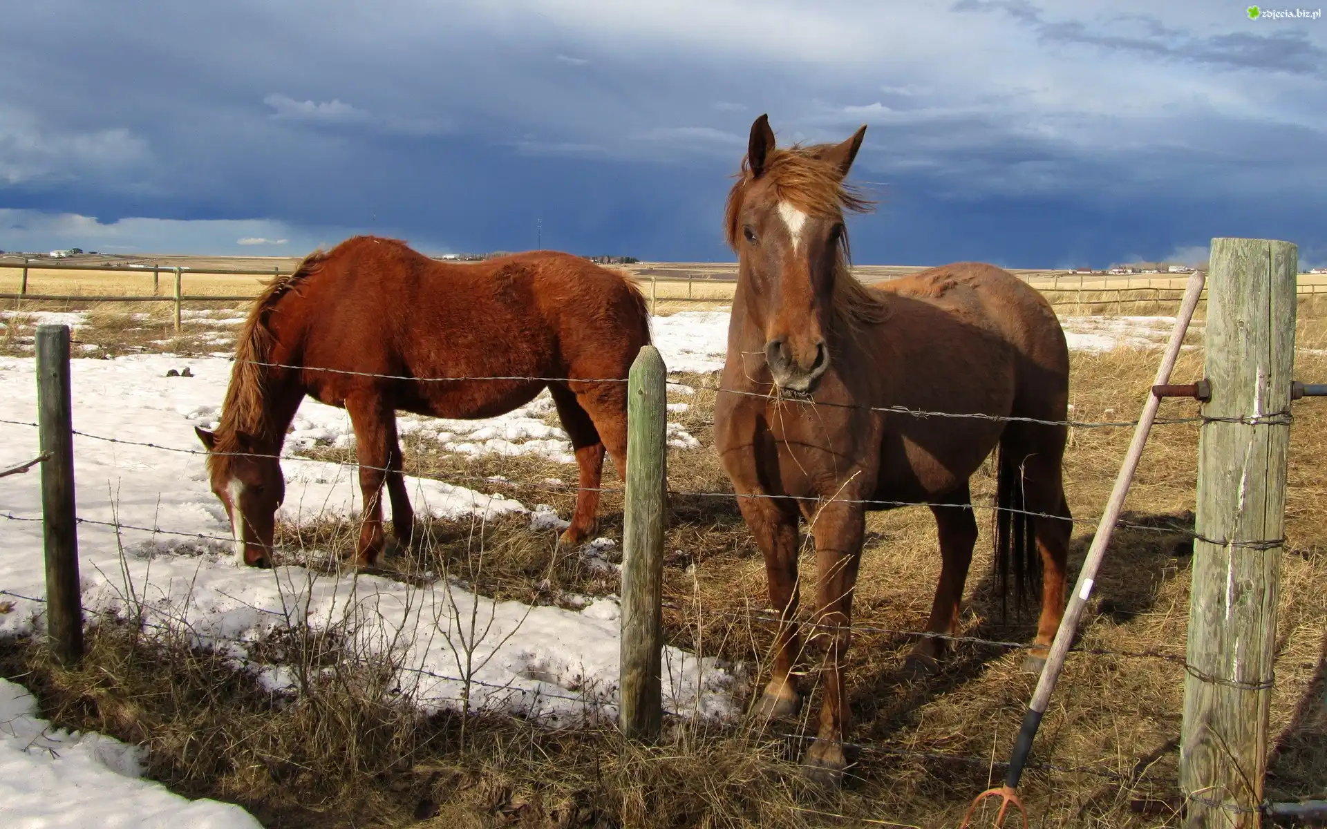 Zdjęcie Dwa, Konie, Zagroda, Śnieg