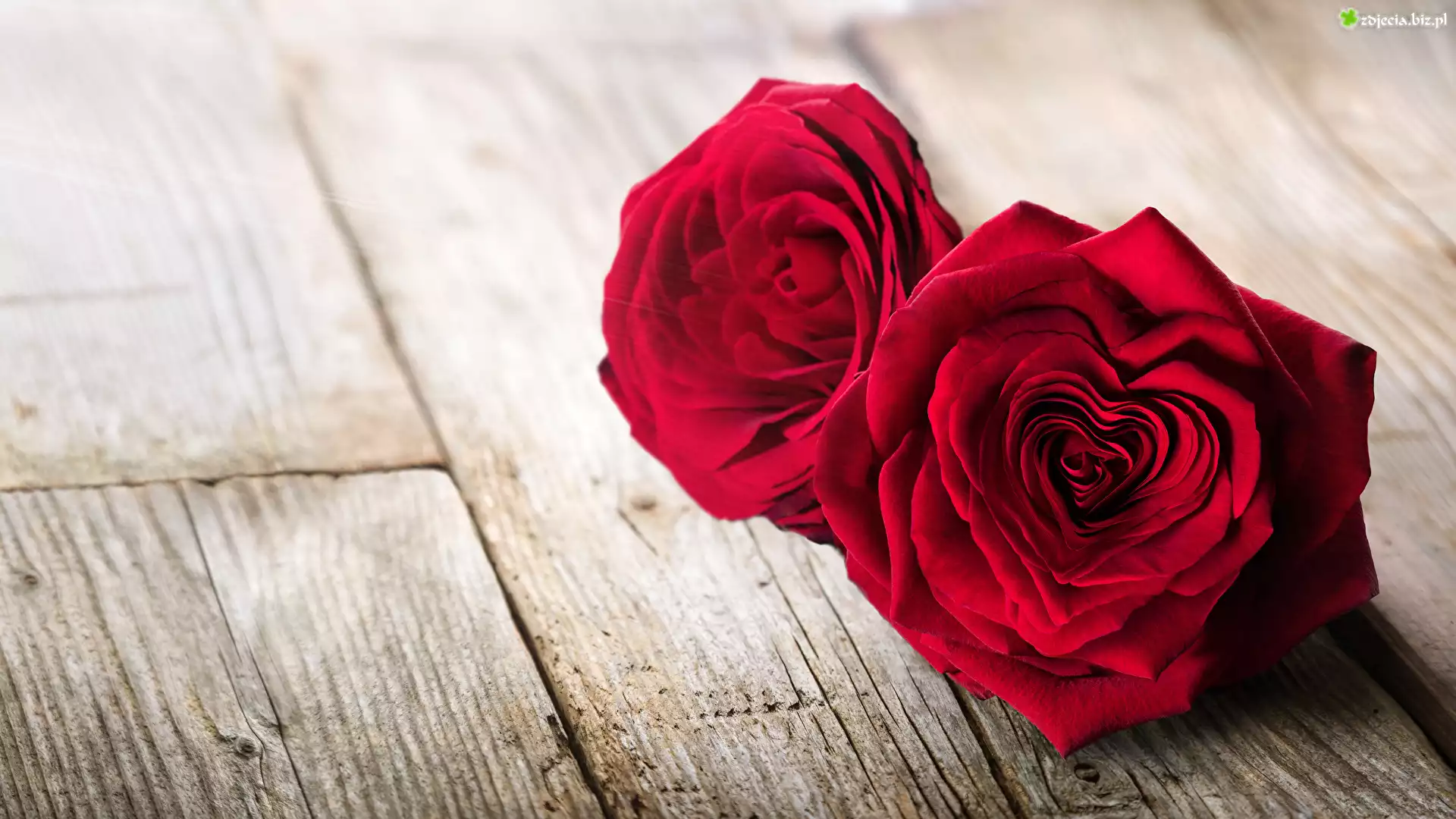 Zdjęcie Kwiaty, Dwie, Czerwone, Róże, Deski
