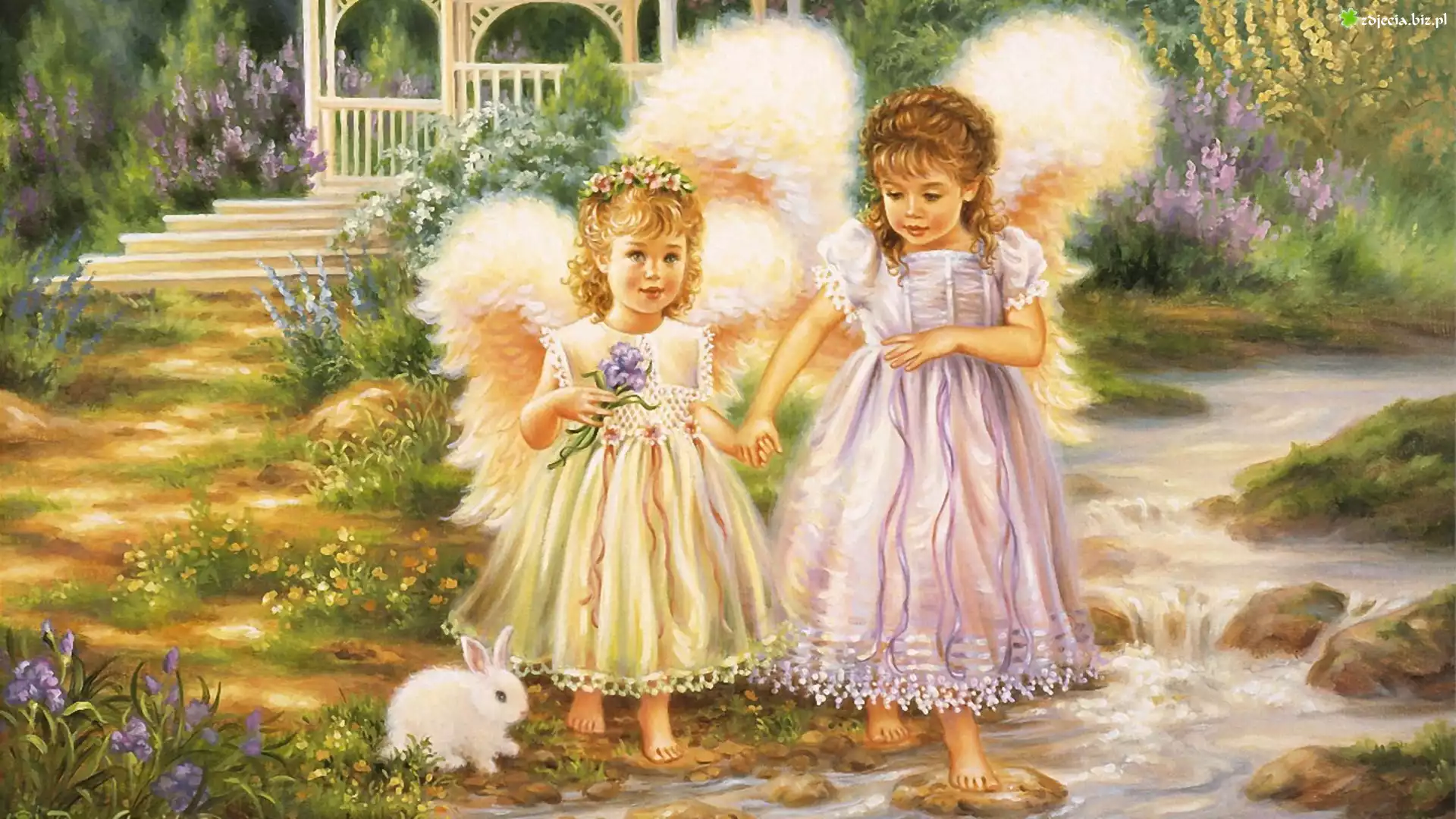Zdjęcie Dwie, Dziewczynki, Aniołki, Króliczek, Dona Gelsinger