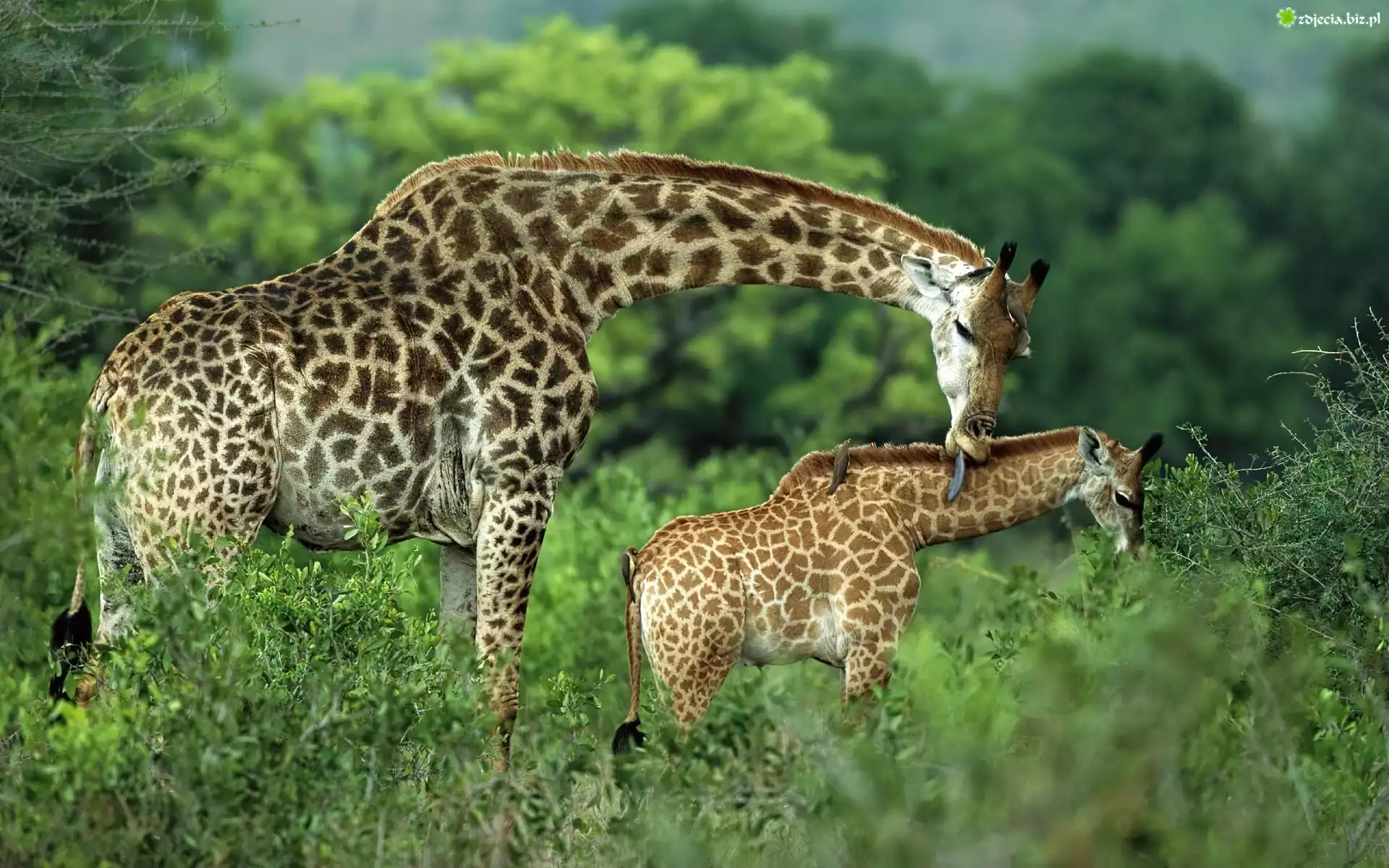 Zdjęcie Dwie, Żyrafy, Matka, Dziecko