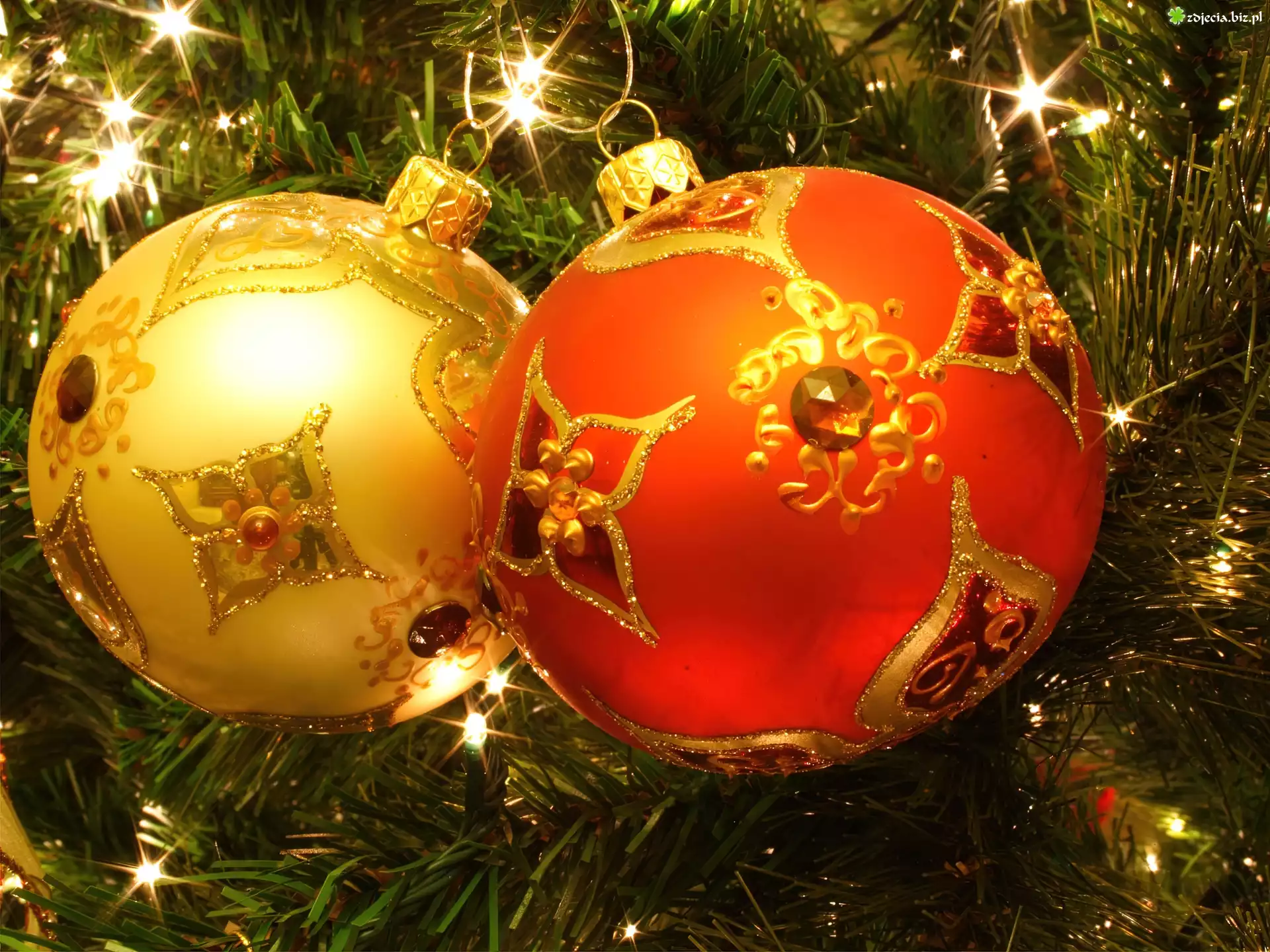 Zdjęcie Dwie, Bombki, Na, Choince