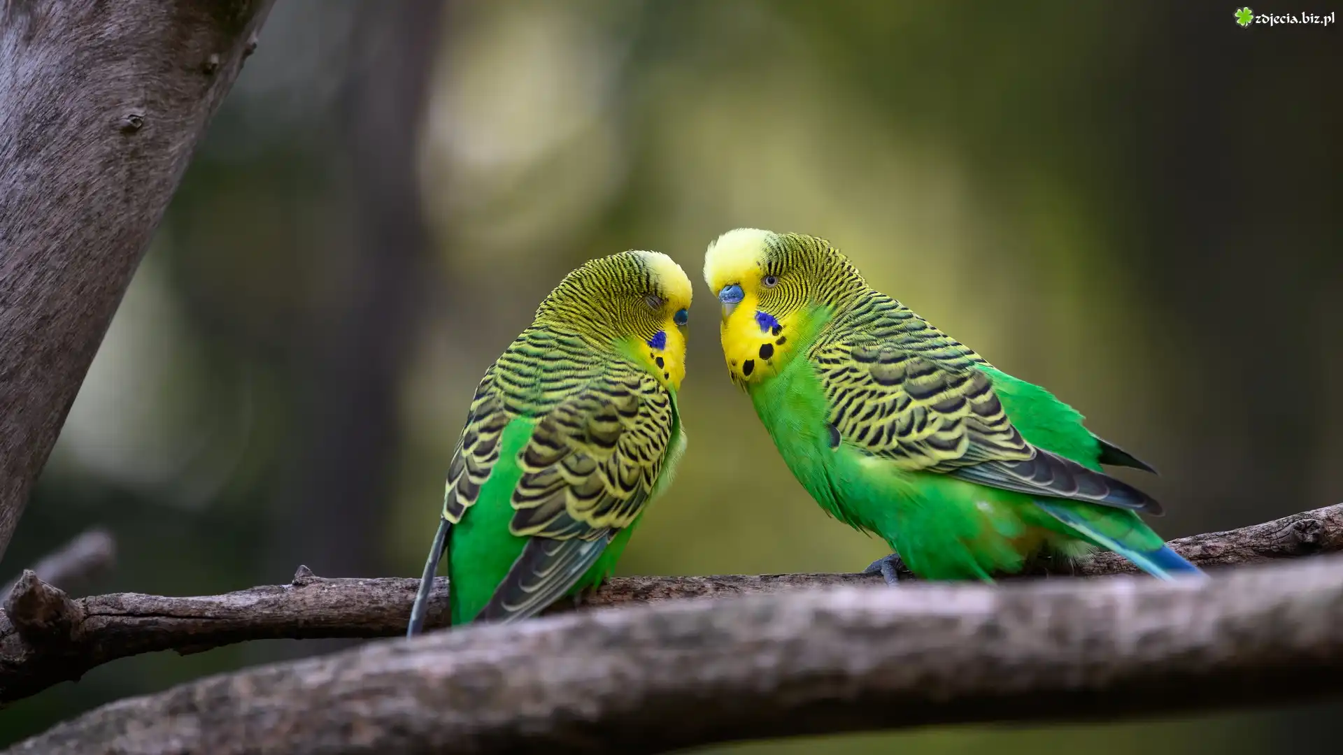 Zdjęcie Dwie, Papugi, Zielone, Papużki faliste