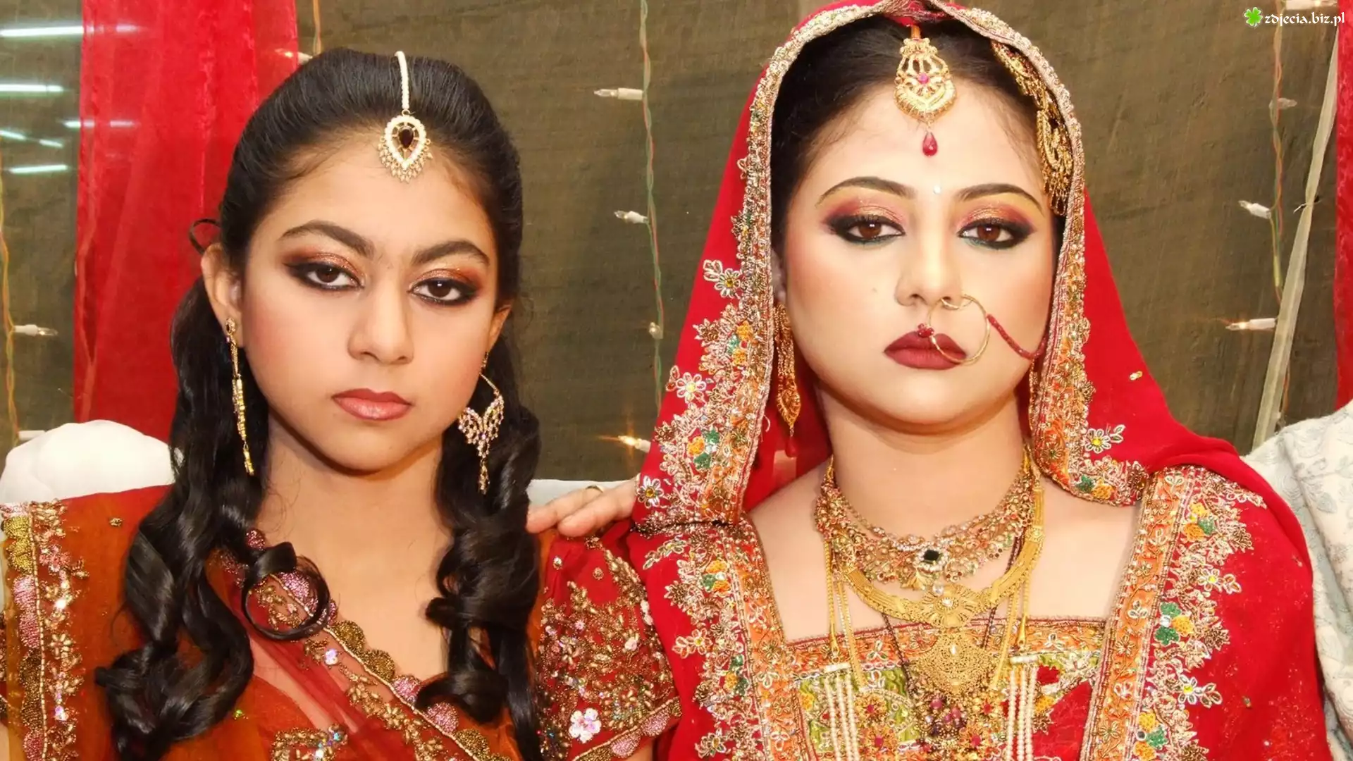 Zdjęcie, Dwie, Kobiety, Stroje, Ludowe