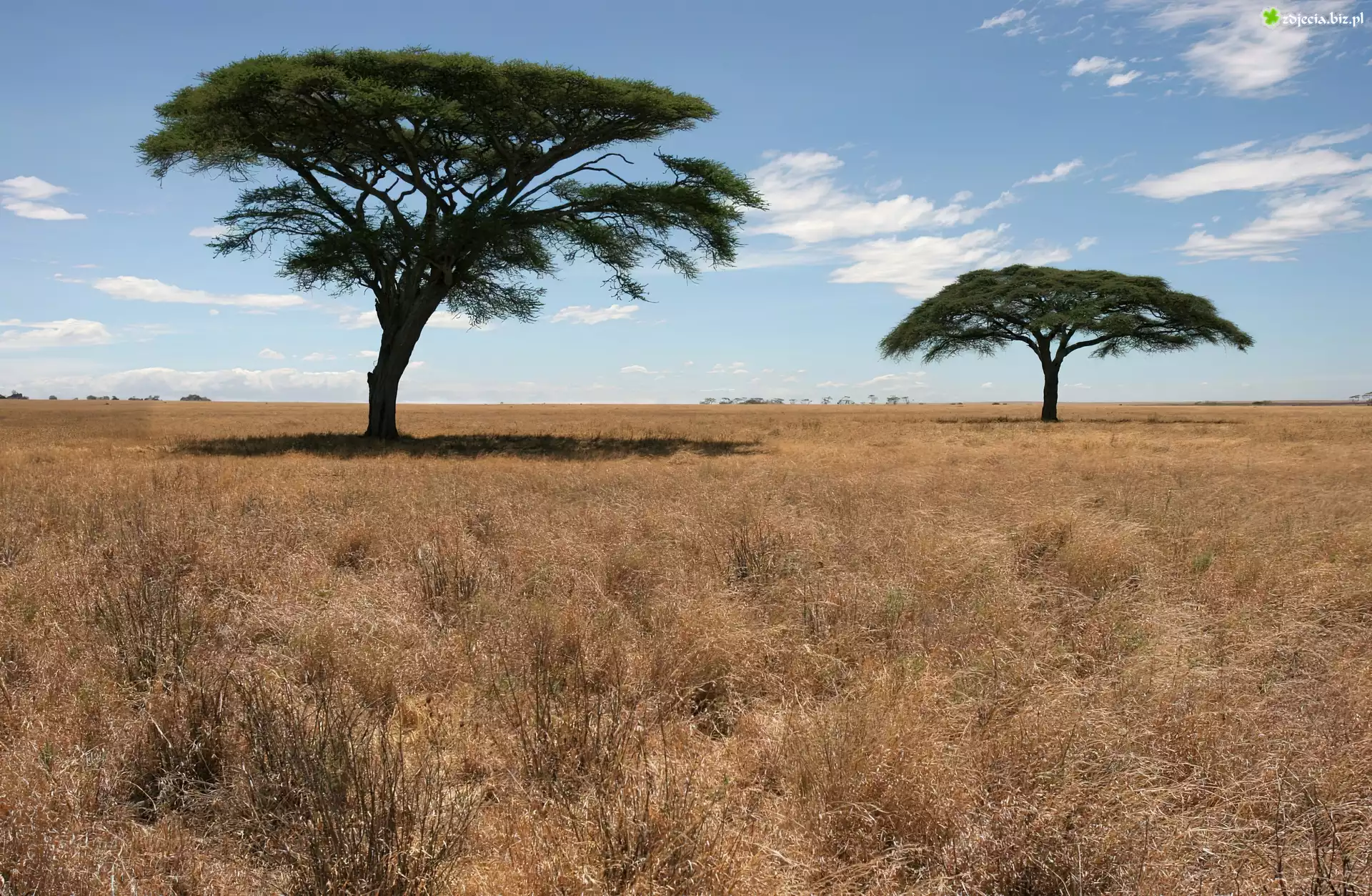 Zdjęcie Dwie, Akacje, Sucha, Trawa, Chmurki