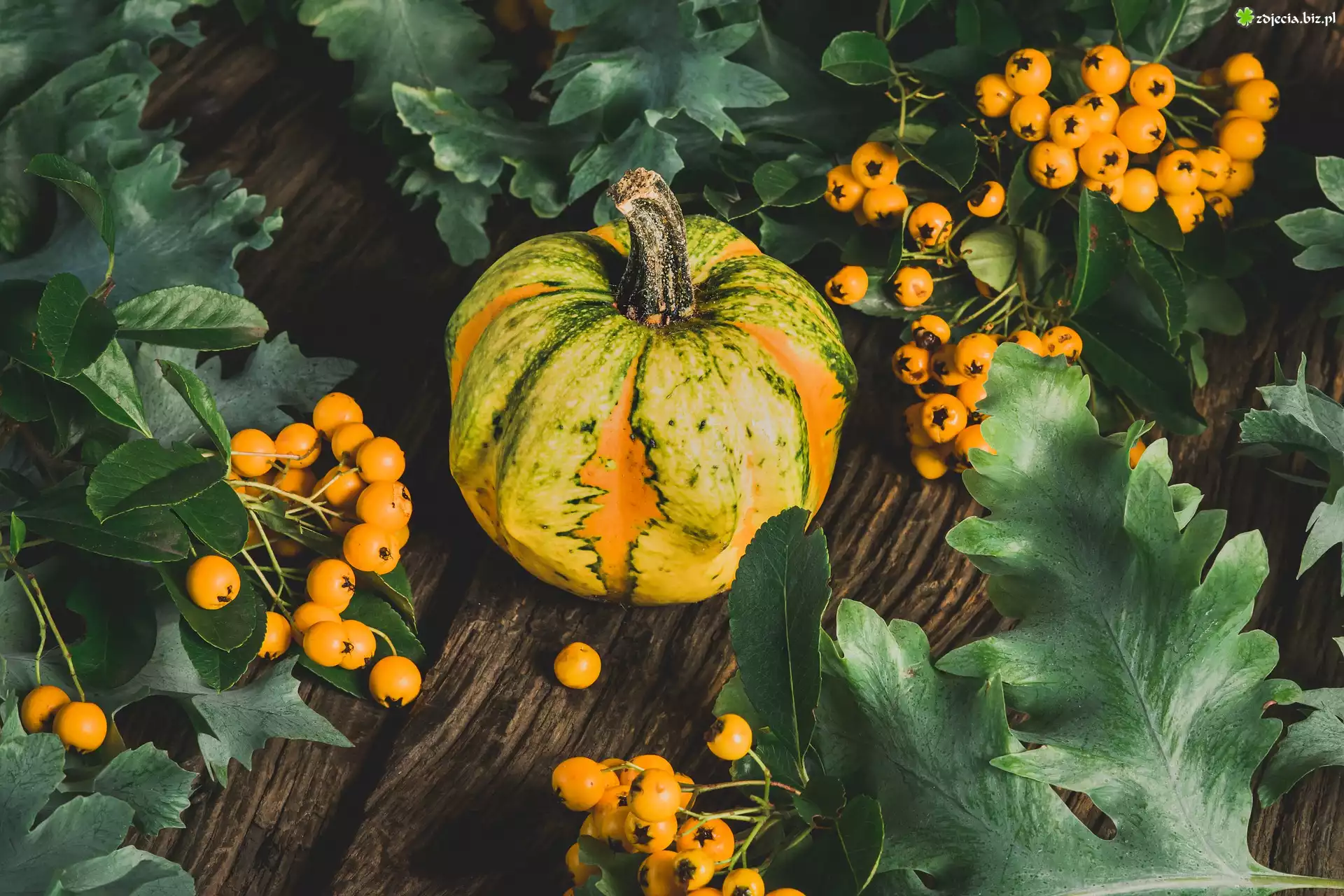 Zdjęcie, Dynia, Owoce, Jagody, Ognik szkarłatny, Liście