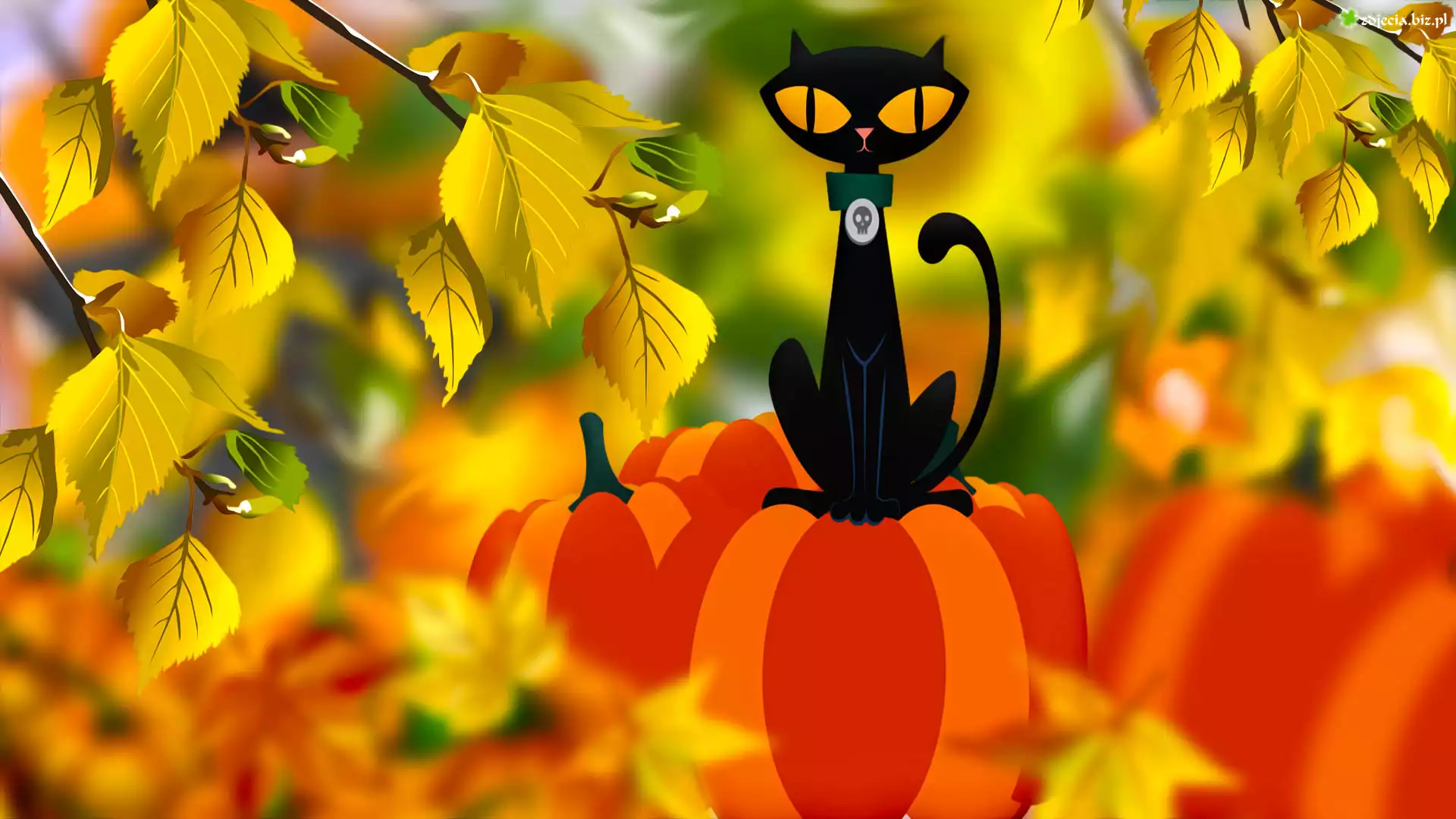 Zdjęcie, Dynie, Kot, Liście, 2D