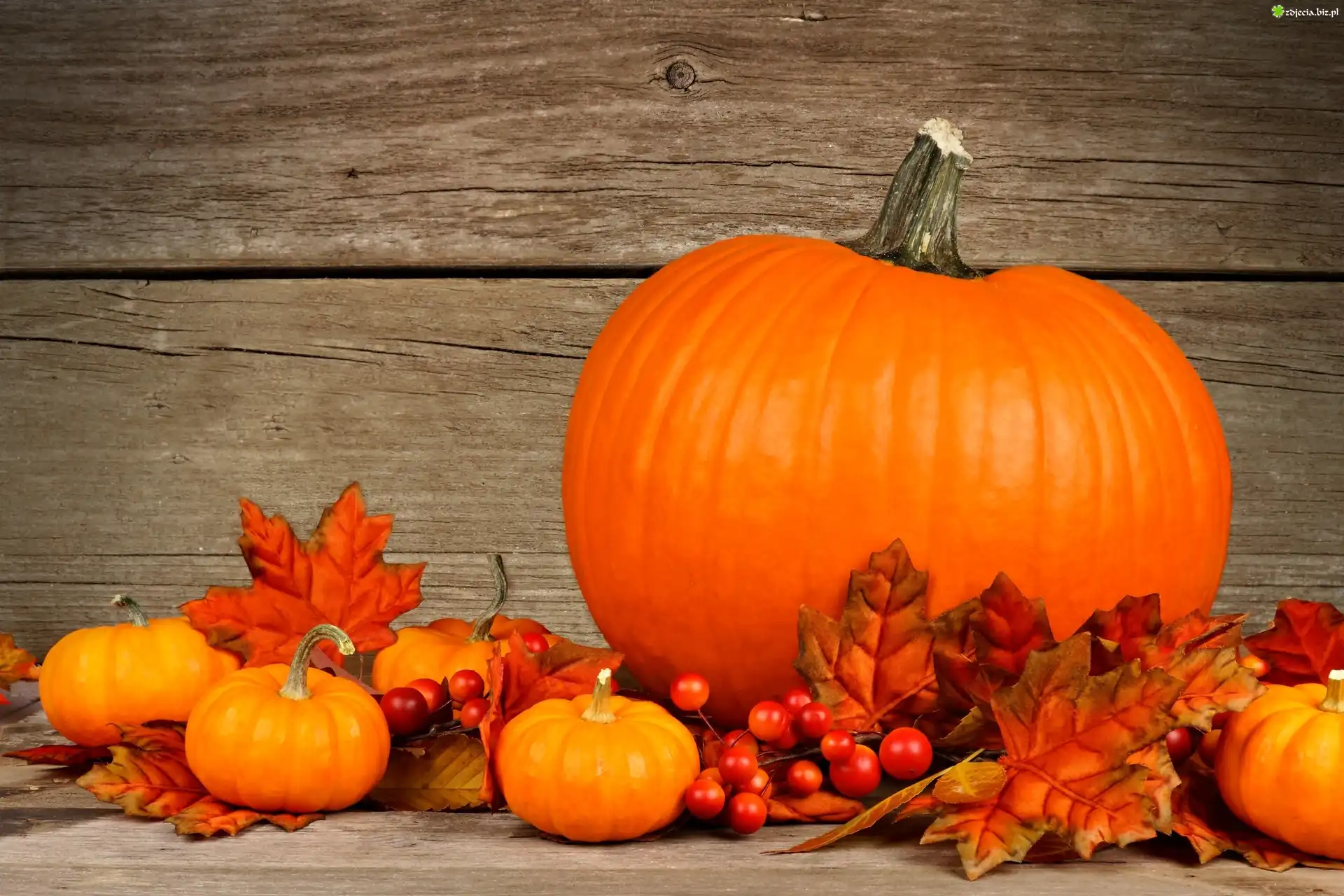 Zdjęcie Dynie, Jesienne, Liście, Martwa, Natura