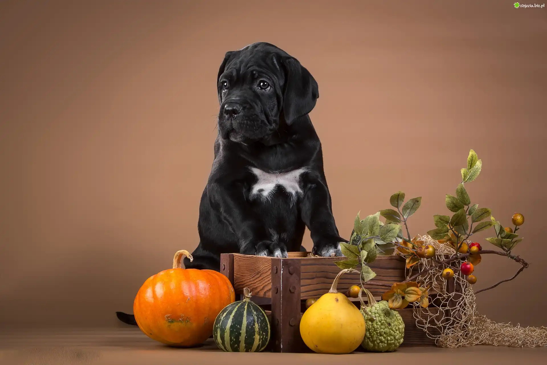 Zdjęcie, Pies, Dynie, Gałązka