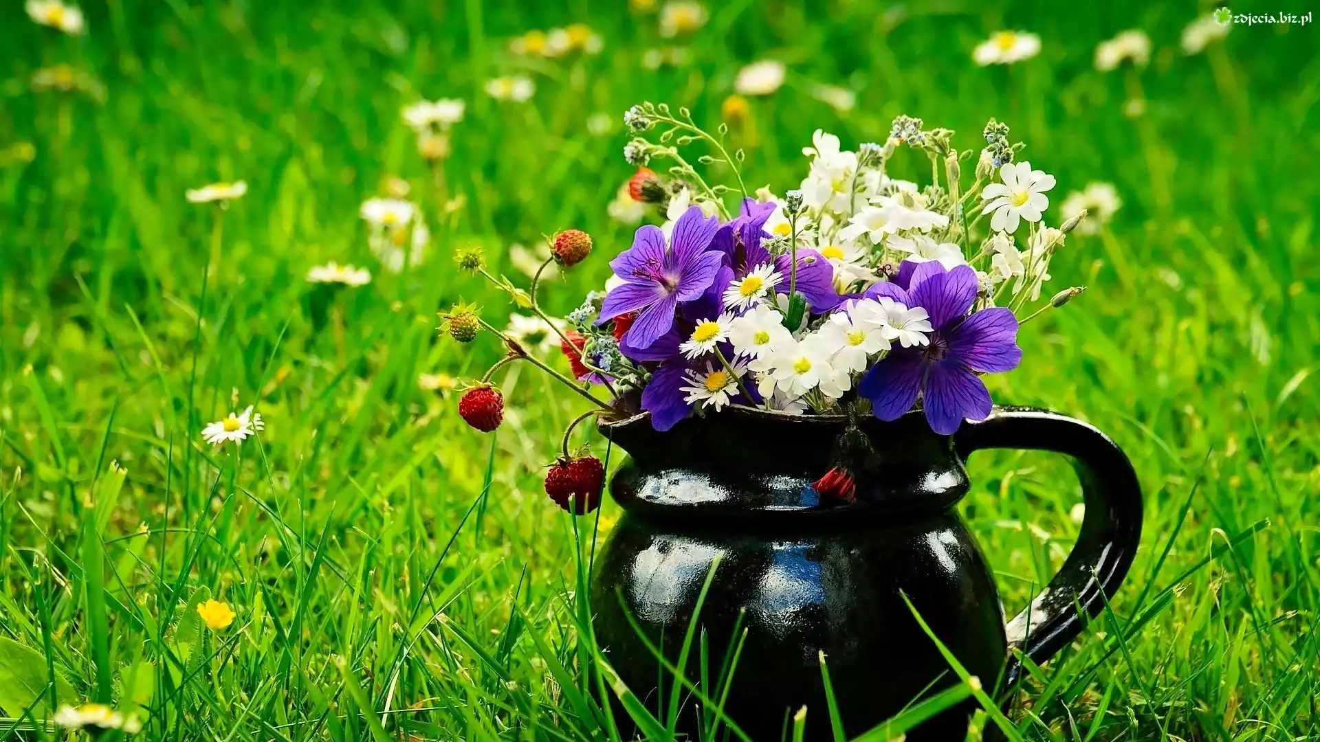Zdjęcie, Dzbanek, Bukiecik, Polnych, Kwiatów, Poziomki, Łąka