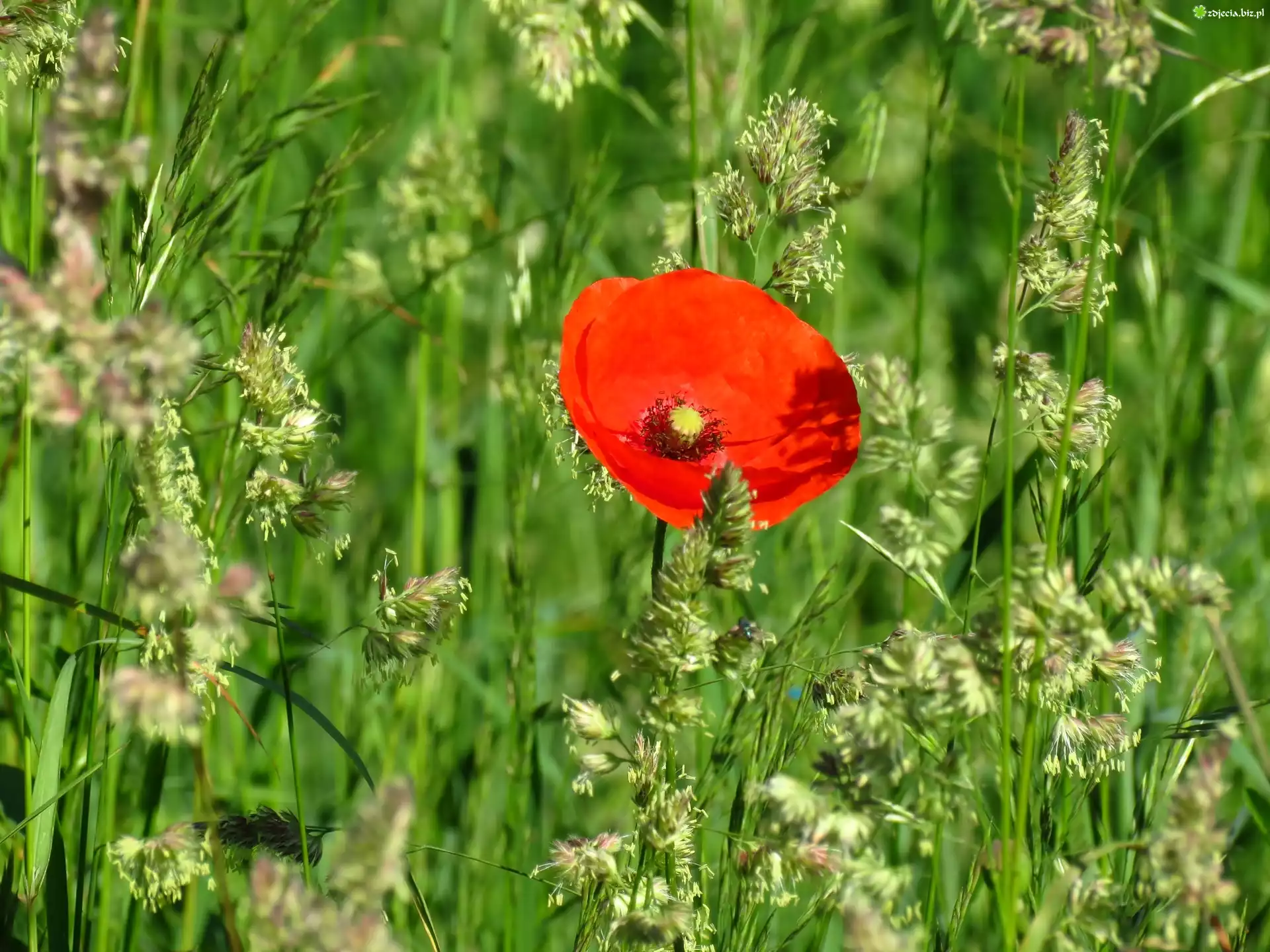 Zdjęcie Mak, Źdźbła, Trawy