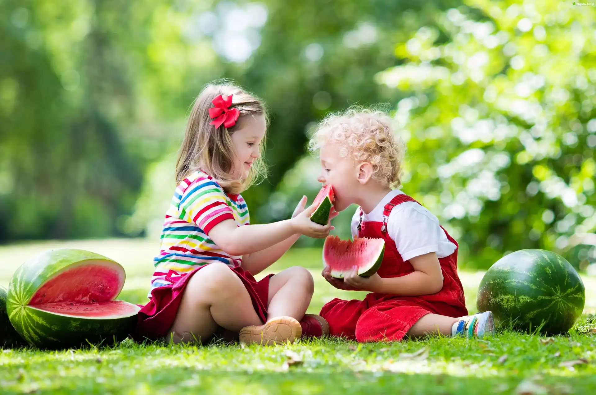 Zdjęcie, Dzieci, Arbuzy