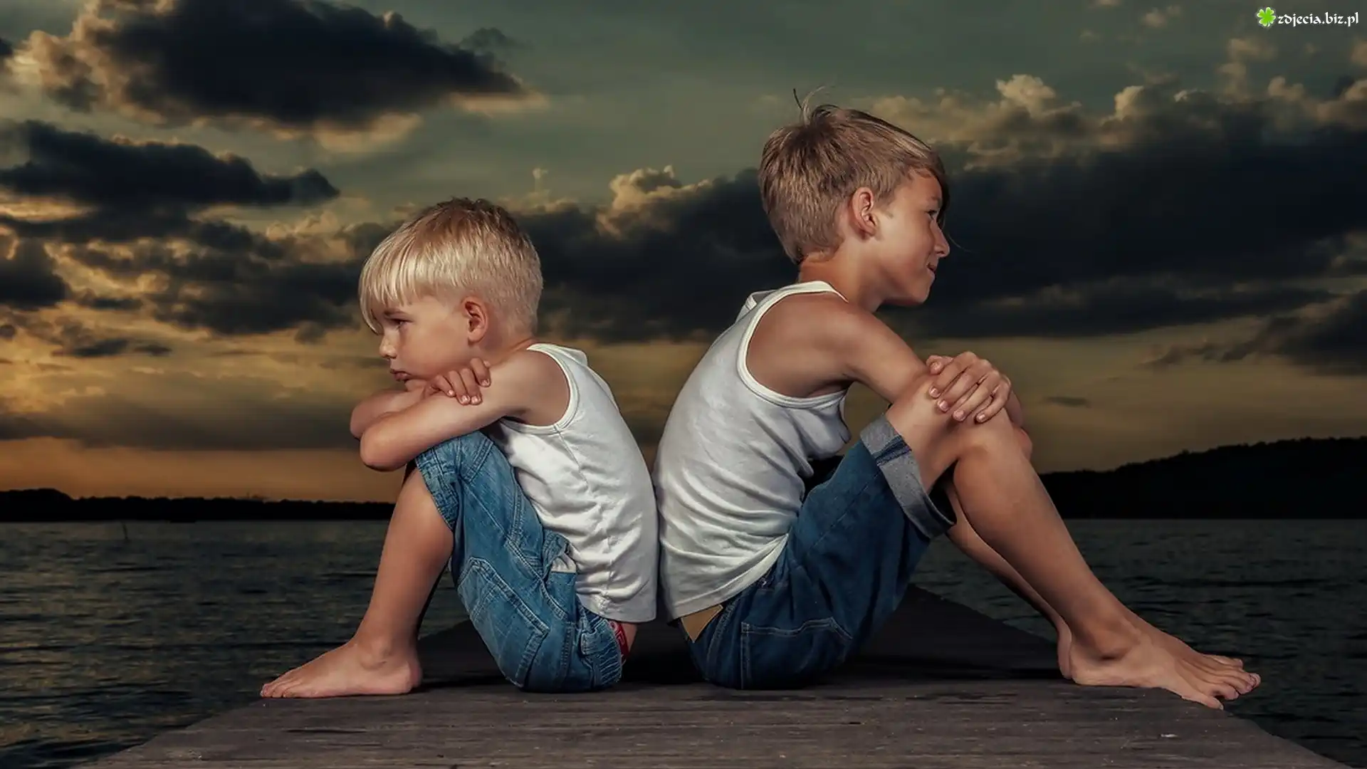 Zdjęcie Dzieci, Chłopcy, Niebo, Chmury, Morze