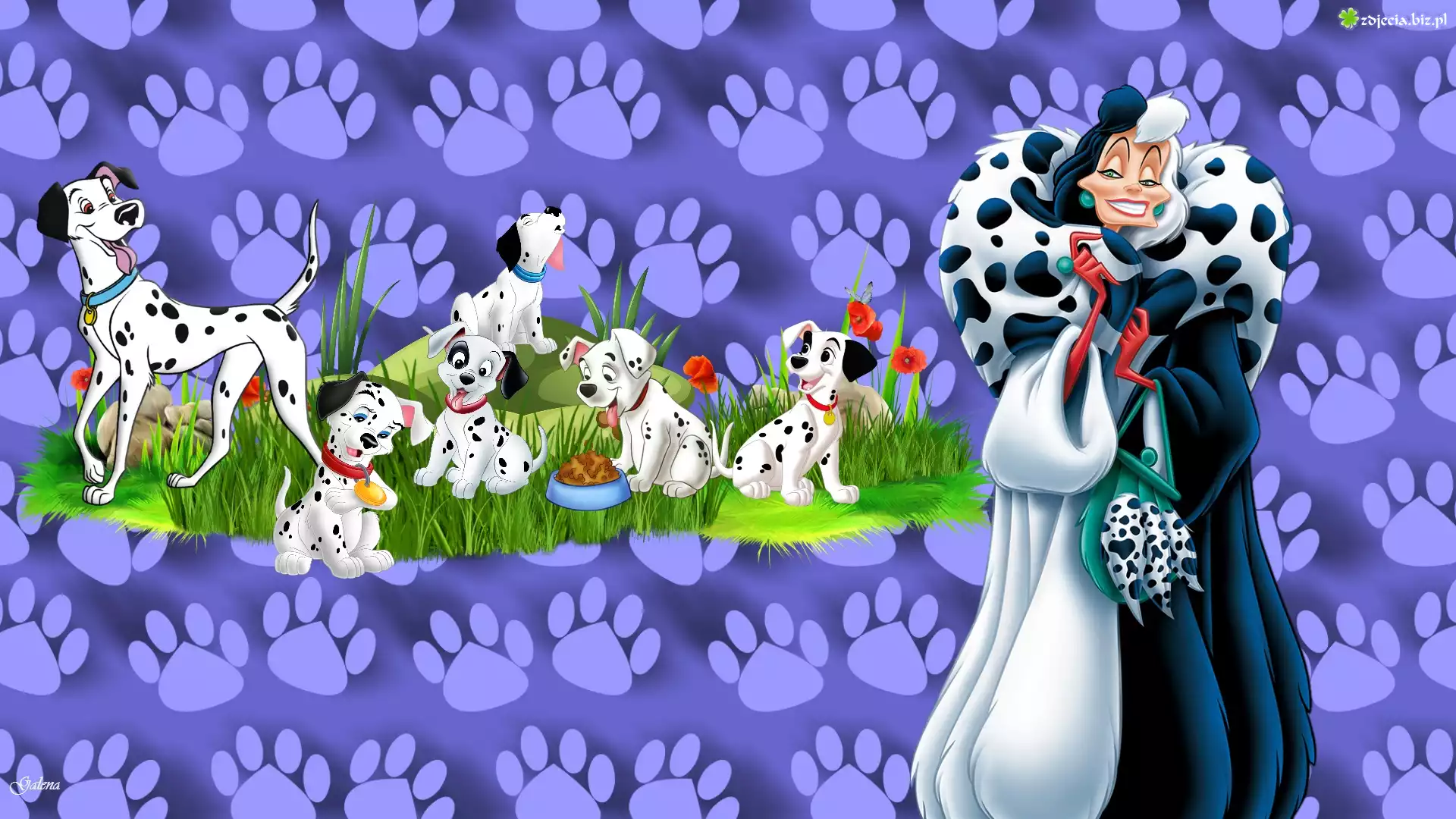 Zdjęcie Cruella Demon, Dalmatyńczyki, Psy, Trawa, Łapy, Grafika, Dla dzieci