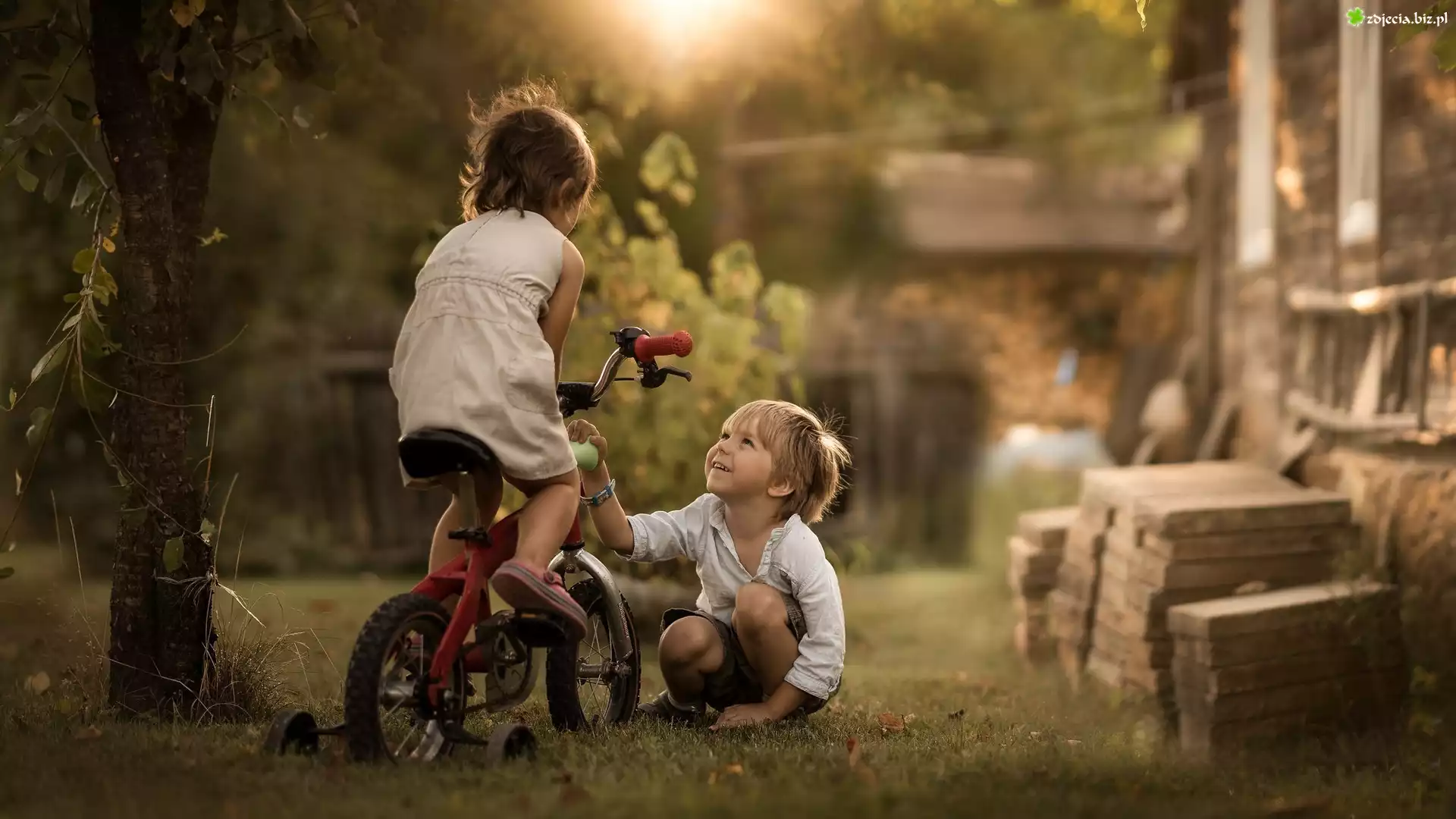 Zdjęcie Dzieci, Chłopiec, Dziewczynka, Rowerek