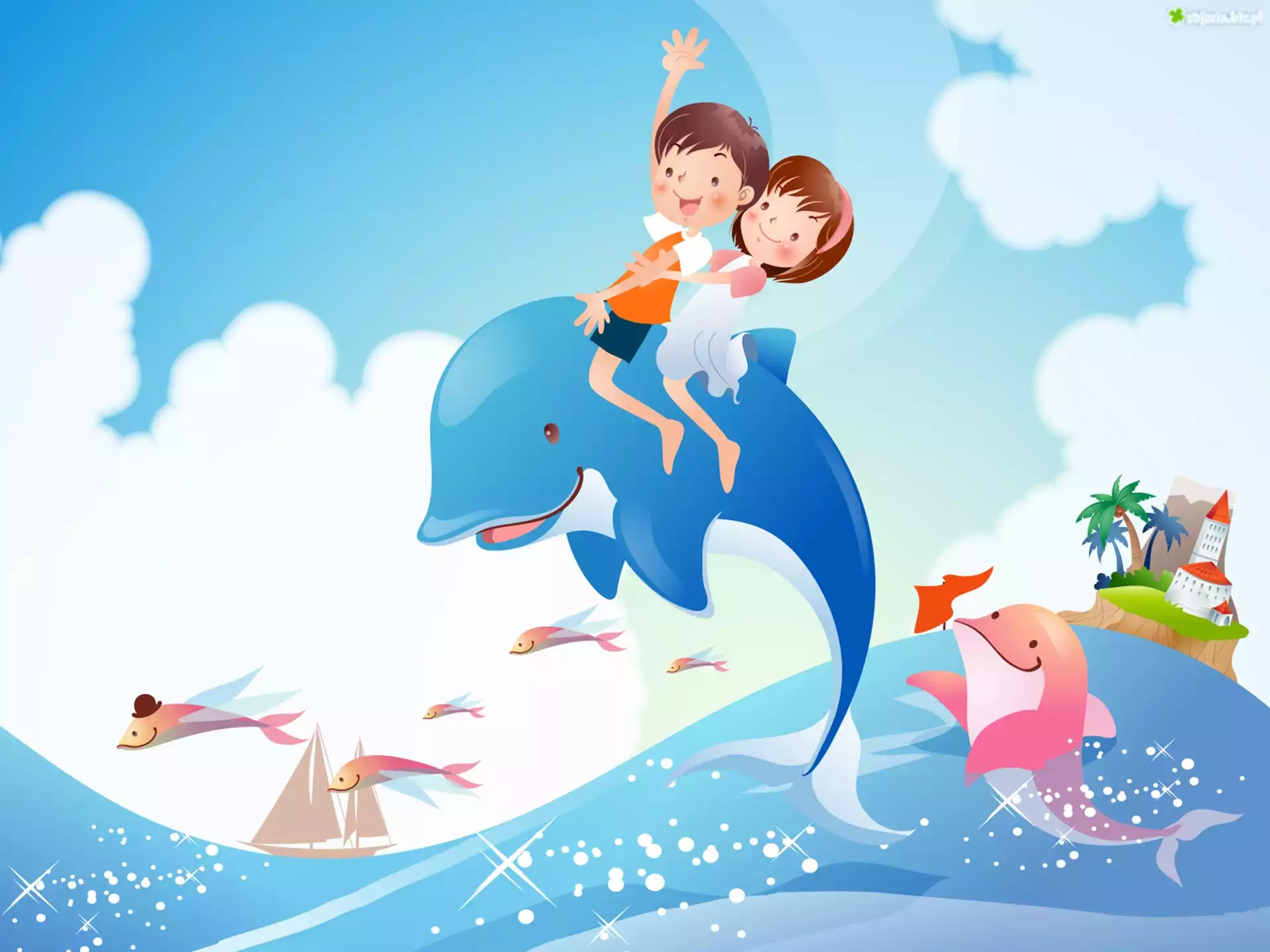 Zdjęcie Para, Dzieci, Delfiny