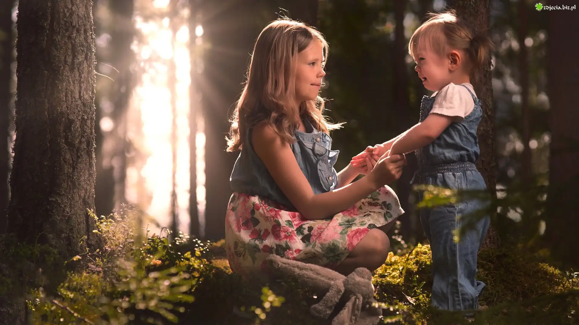 Zdjęcie Dzieci, Dziewczynki, Siostry, Las, Płacząca, Dziewczynka