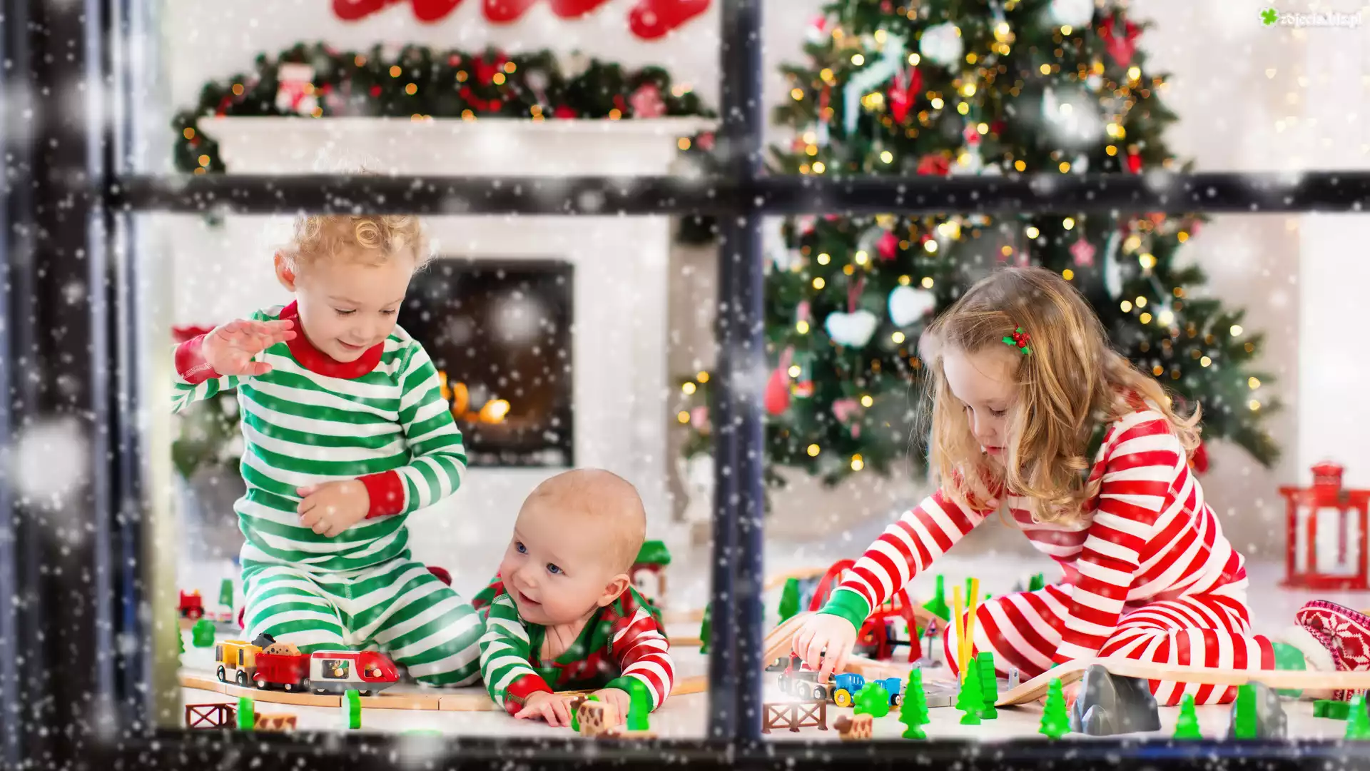 Zdjęcie Dzieci, Choinka, Zabawki, Prezenty, Kominek