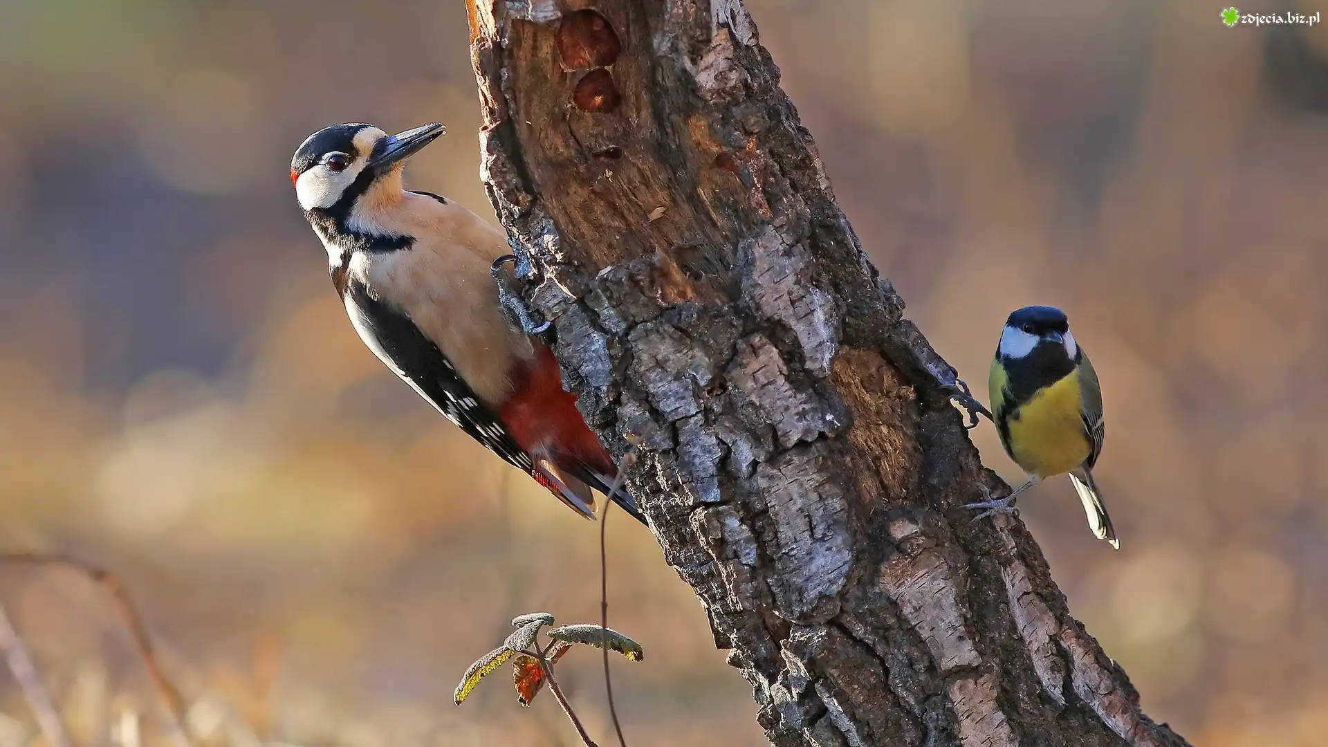 Zdjęcie Ptaki, Dzięcioł, Sikorka