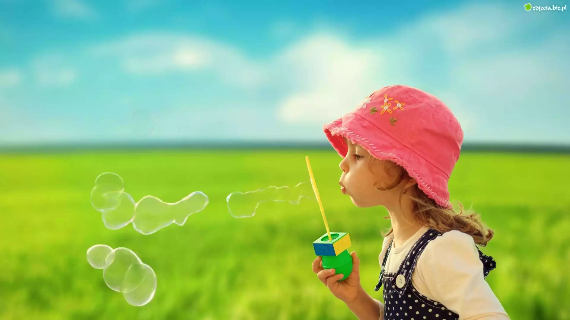 Zdjęcie Dziecko, Dziewczynka, Łąka, Bańki Mydlane